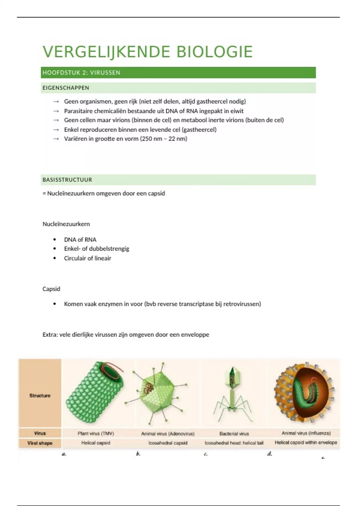 Dit is een uitgebreide samenvatting van hoofdstuk 2 virussen van vergelijkende biologie. Dit is een vak in het eerste semester van Biomedische Wetenschappen aan de KU Leuven. Aantekeningen van in de les zijn er ook in verwerkt!