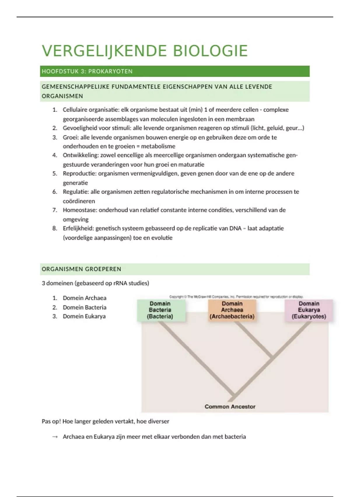 1. Cellulaire organisatie: elk organisme bestaat uit (min) 1 of meerdere cellen - complexe