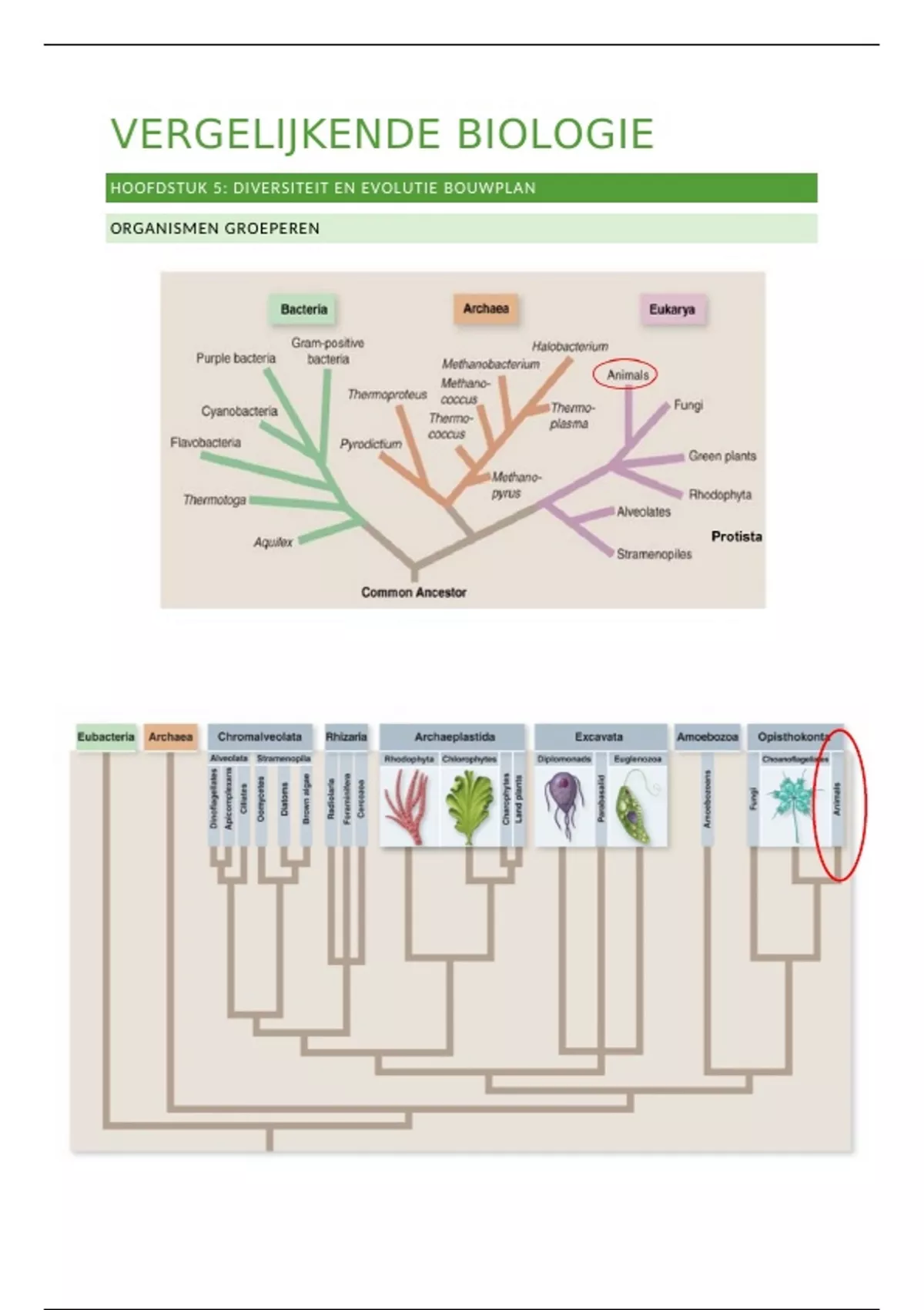 Dit is een uitgebreide samenvatting van hoofdstuk 5 diversiteit en evolutie van bouwplan van vergelijkende biologie. Dit is een vak in het eerste semester van Biomedische Wetenschappen aan de KU Leuven. Aantekeningen van in de les zijn er ook in verwerkt!