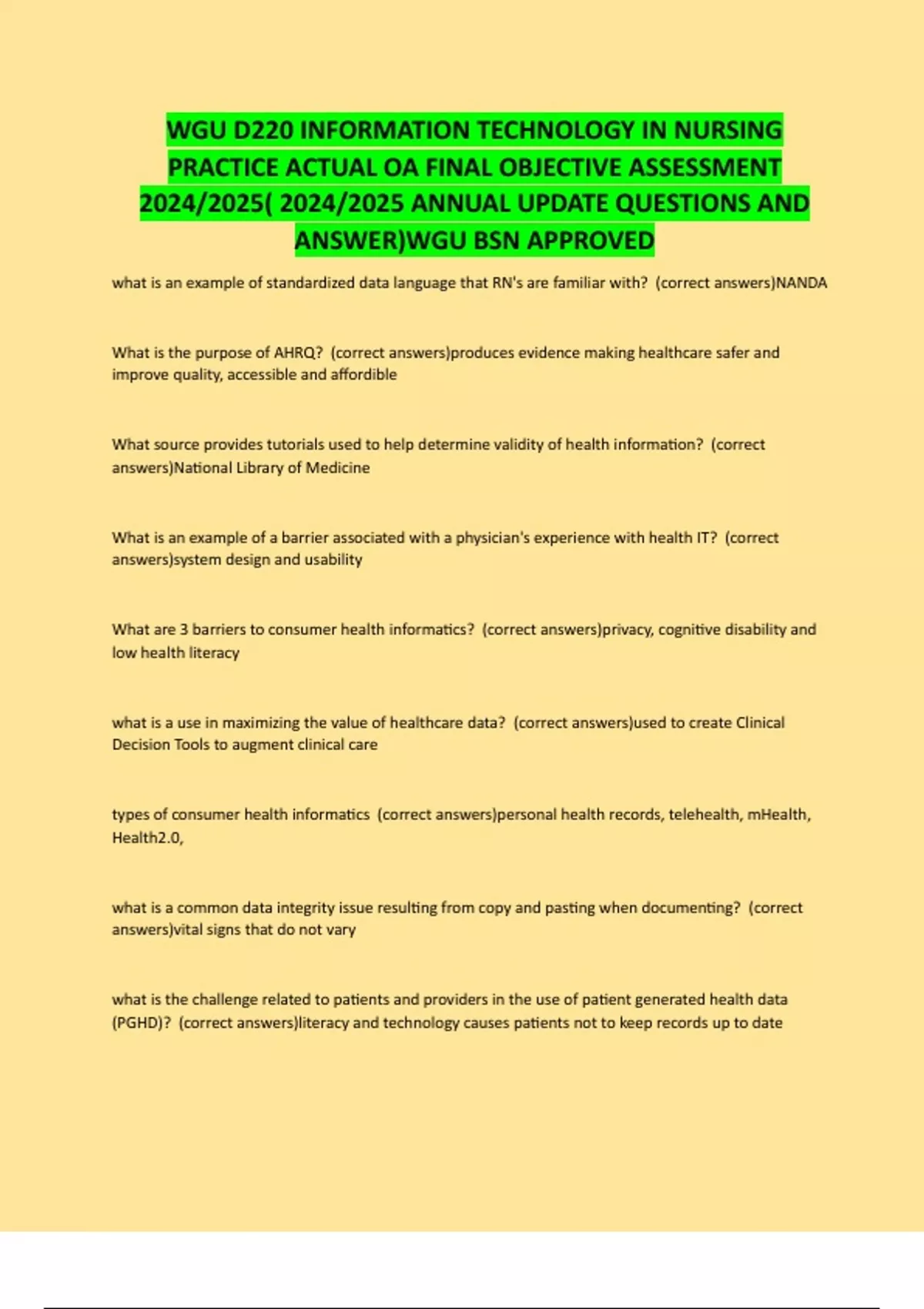 PRACTICE ACTUAL OA FINAL OBJECTIVE ASSESSMENT
