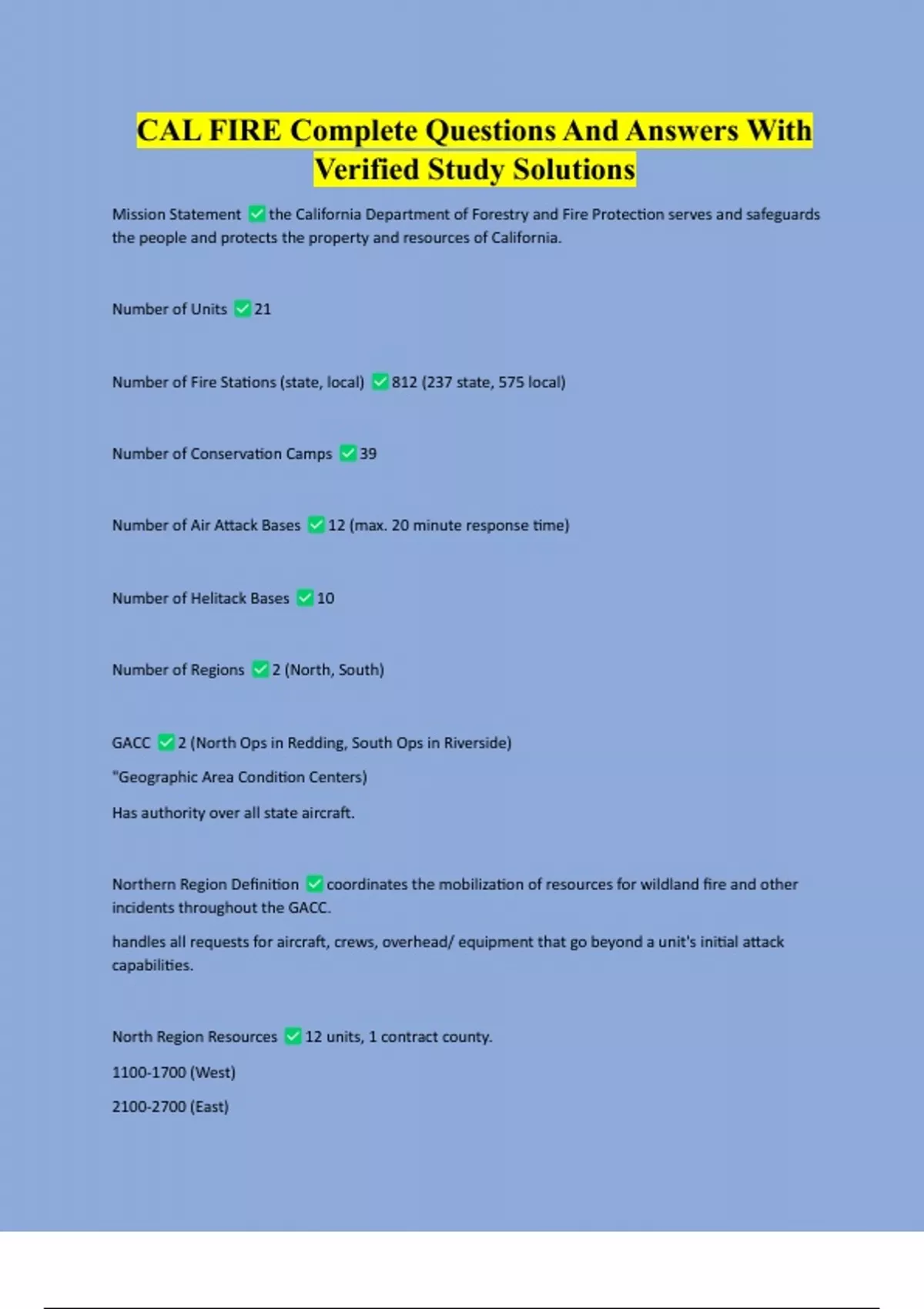 CAL FIRE Complete Questions And Answers With Verified Study Solutions CAL FIRE Complete Questions And Answers With Verified Study Solutions