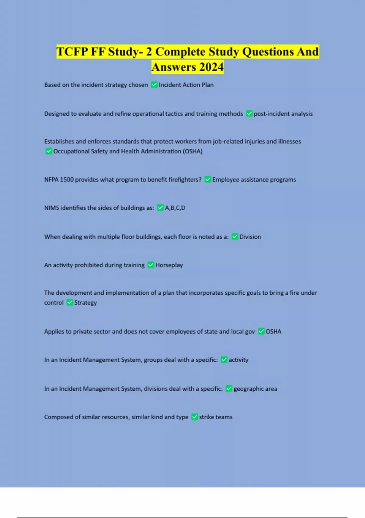 TCFP FF Study- 2 Complete Study Questions And Answers 2024