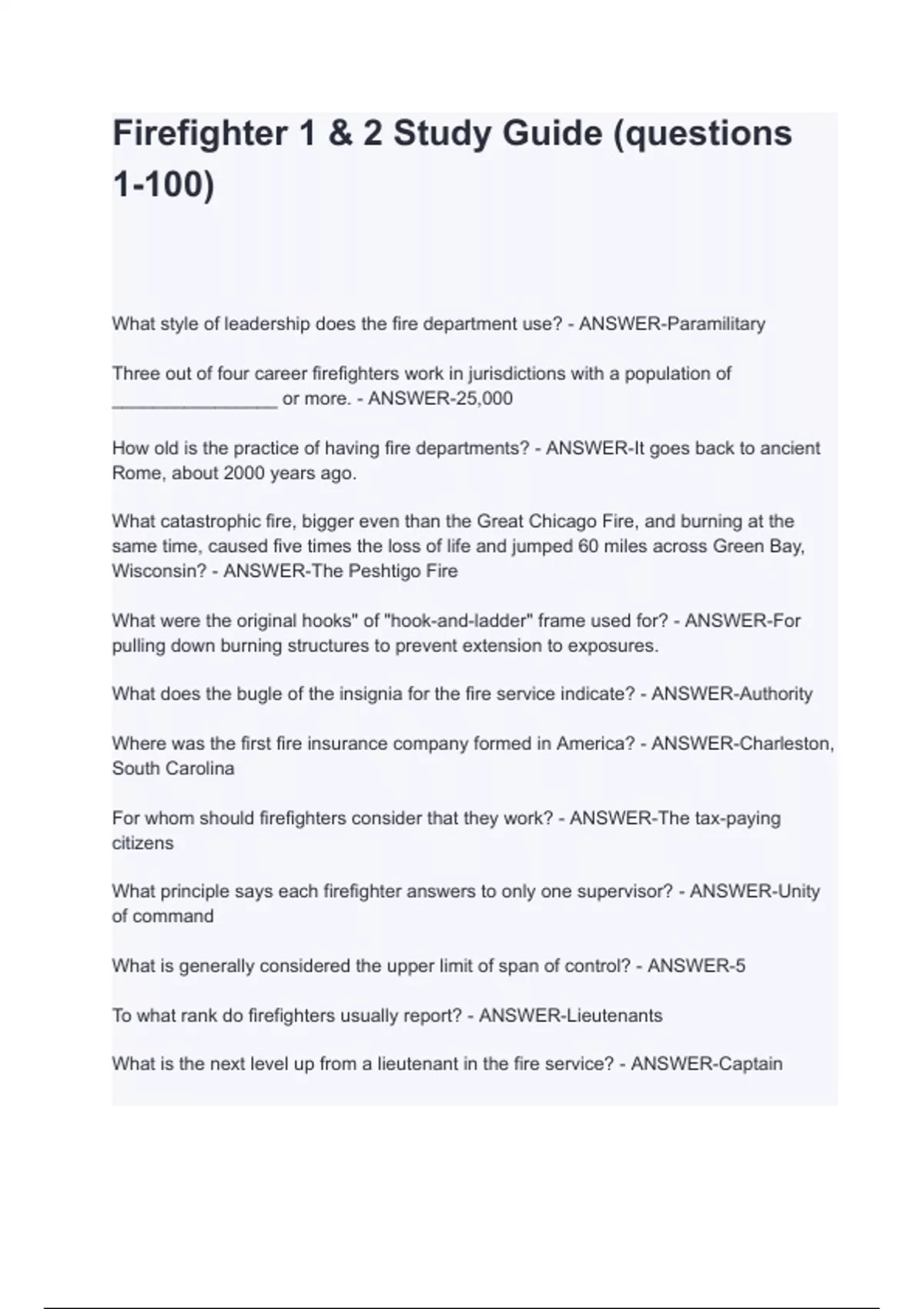 Firefighter 1 & 2 Study Guide (questions and answers 1-100)