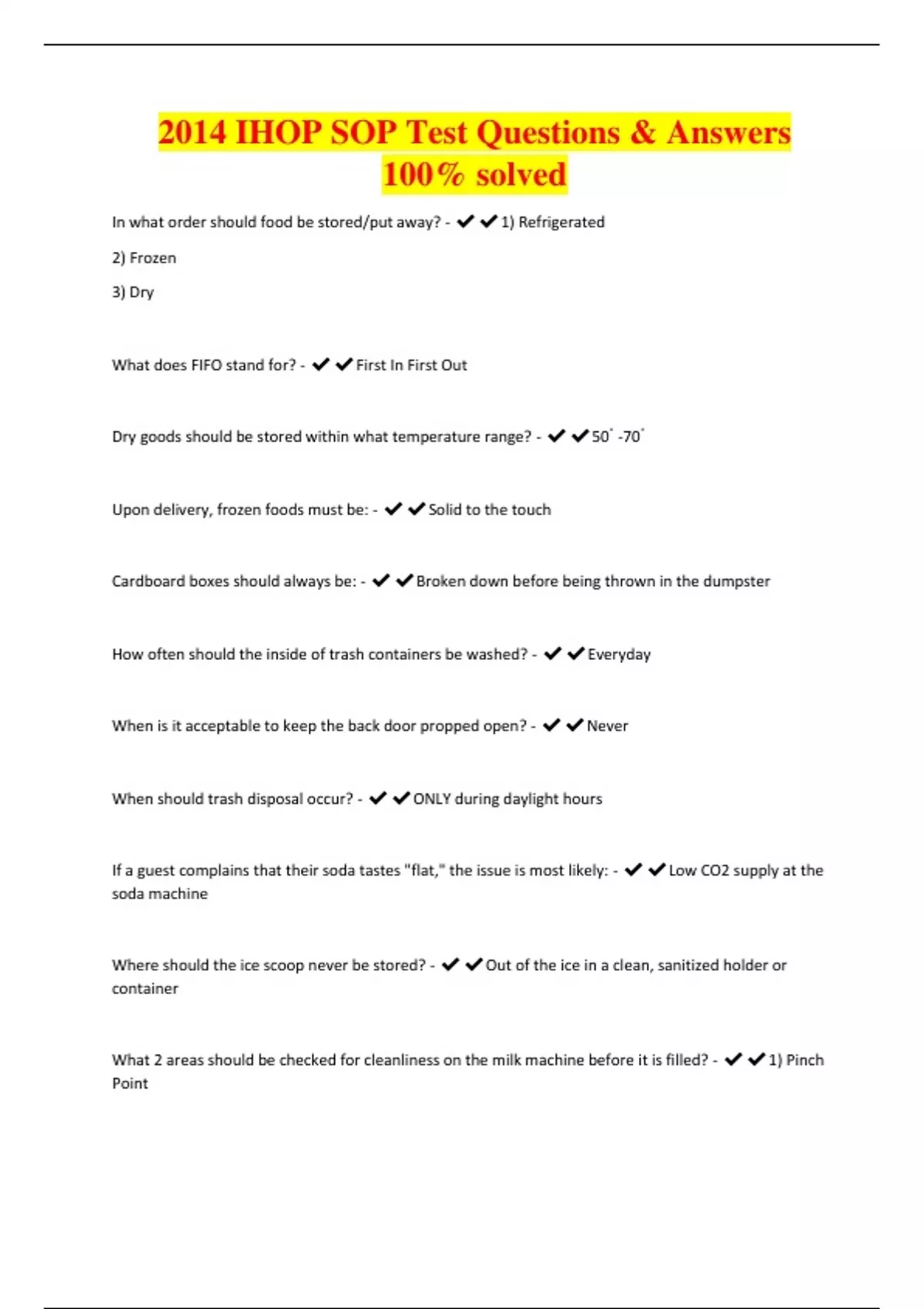 2014 IHOP SOP Test Questions & Answers 100% solved