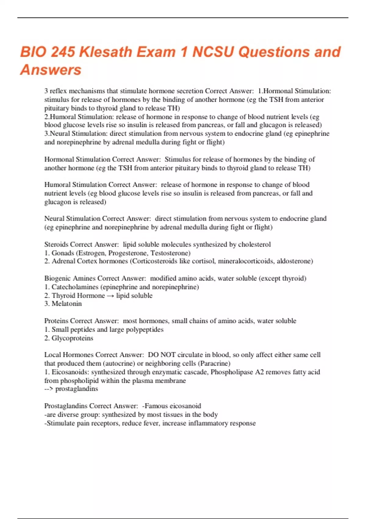 bio 245 klesath exam 1 ncsu questions and answers