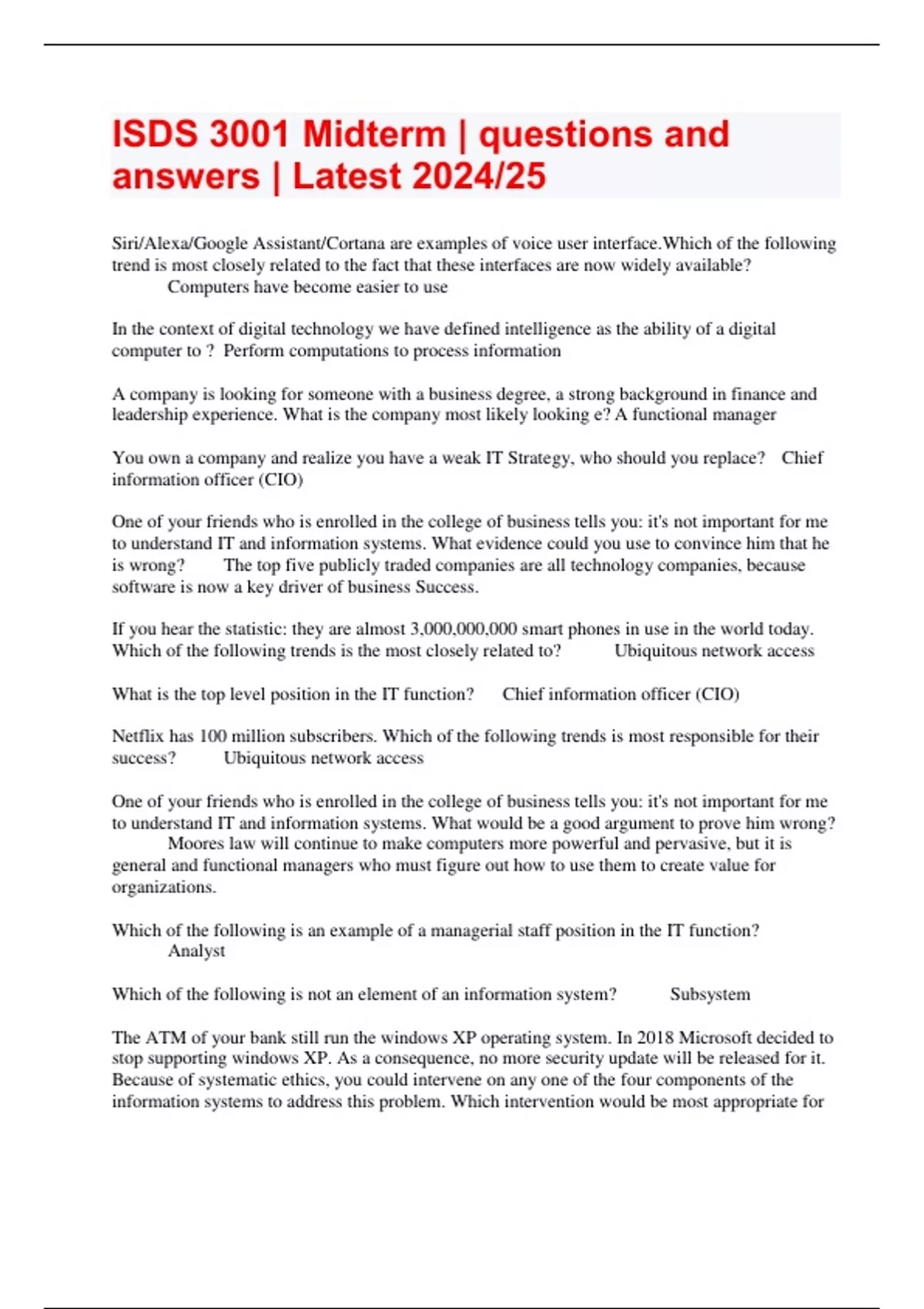 ISDS 3001 Midterm | questions and answers | Latest 2024/25