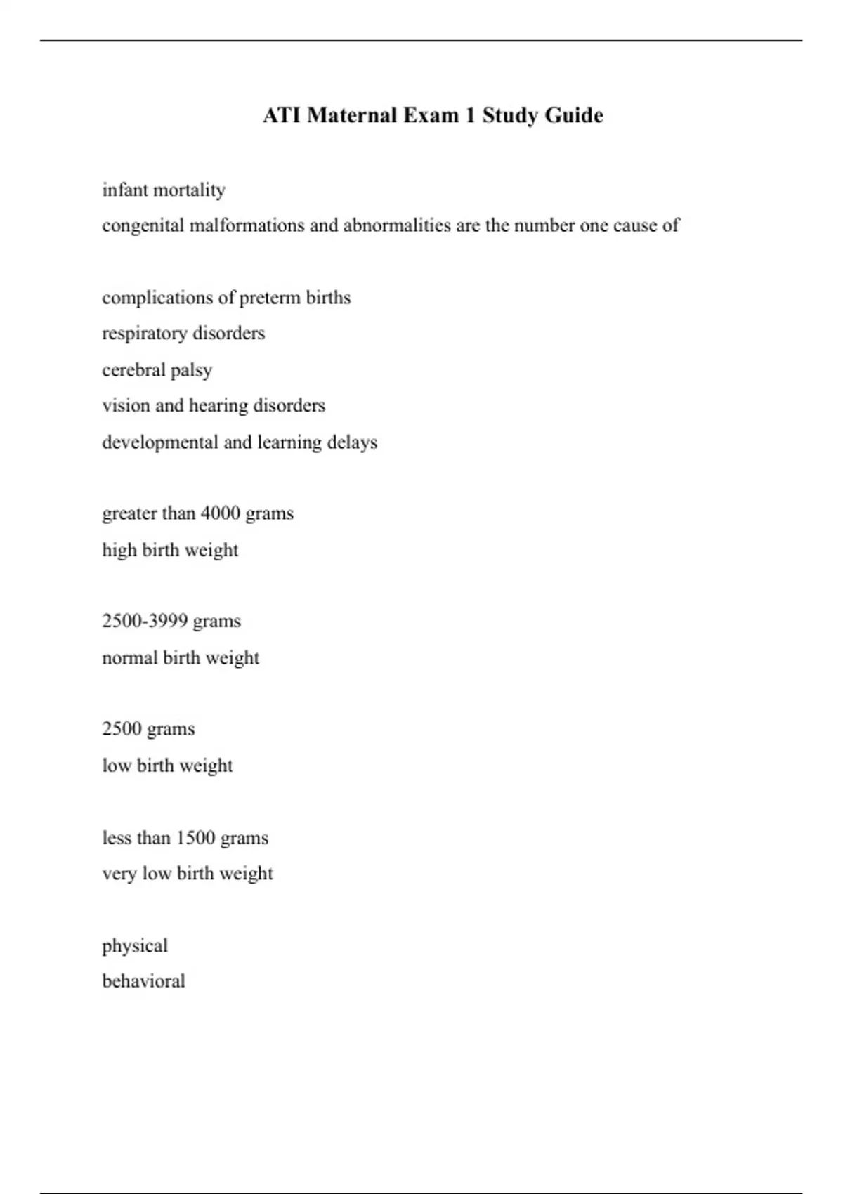 ati maternal exam 1 study guide