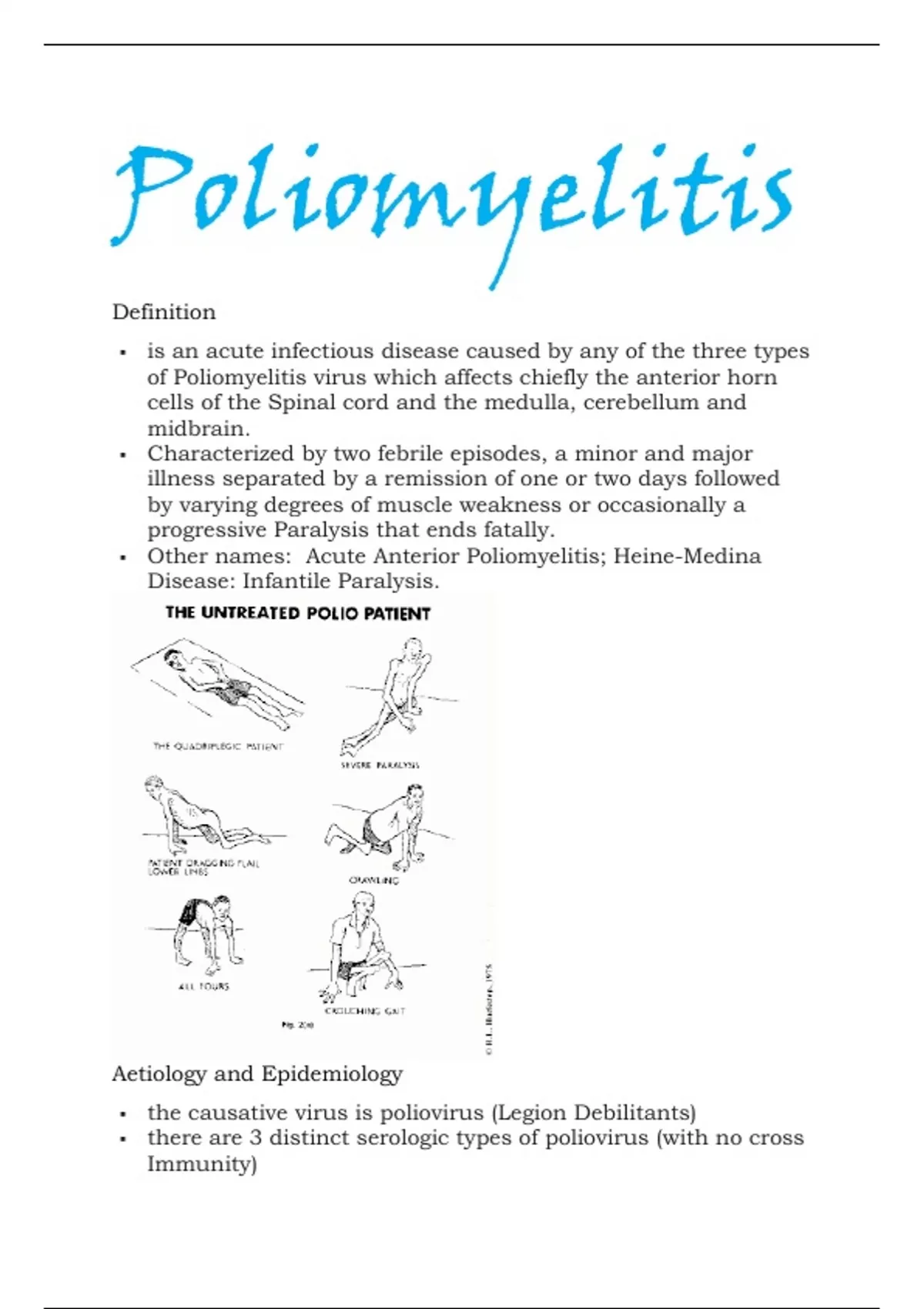 ▪ Other names: Acute Anterior Poliomyelitis; Heine-Medina
