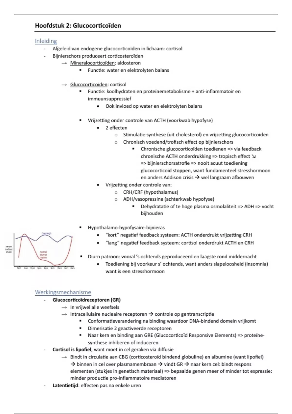 Dit document bevat de lesnotities gecombineerd met informatie uit de cursus van deel 5, hoofdstuk 2 glucocorticoïden. Inclusief tekeningen en mogelijke examenvragen zijn aangeduid.