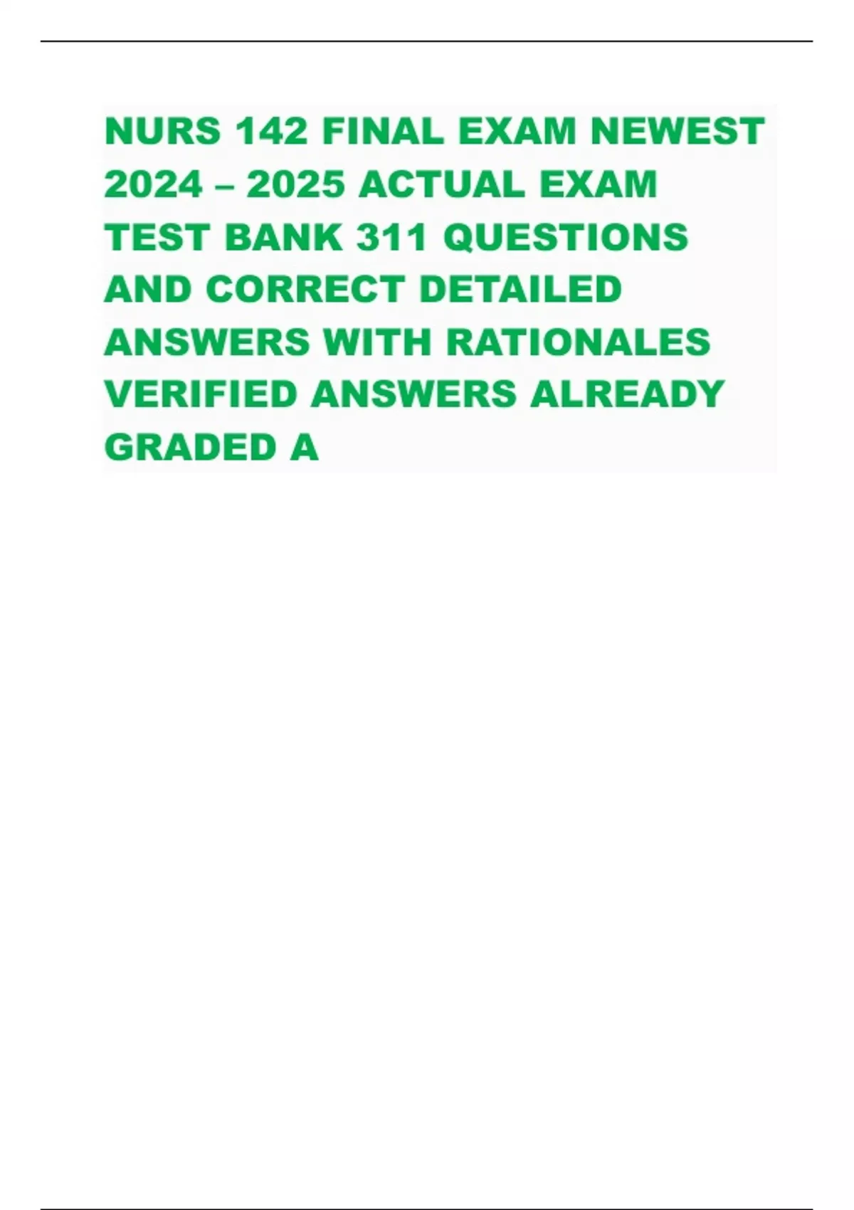 NURS 142 FINAL EXAM NEWEST 2024 – 2025 ACTUAL EXAM TEST BANK 311 QUESTIONS AND CORRECT DETAILED ANSWERS WITH RATIONALES VERIFIED ANSWERS ALREADY GRADED A