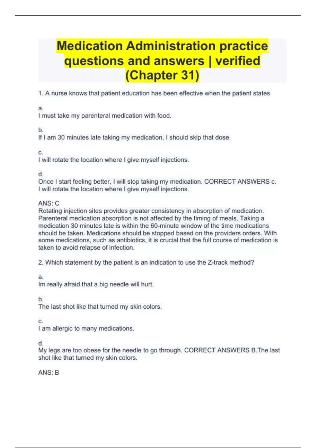 Medication Administration practice questions and answers | verified (Chapter 31)