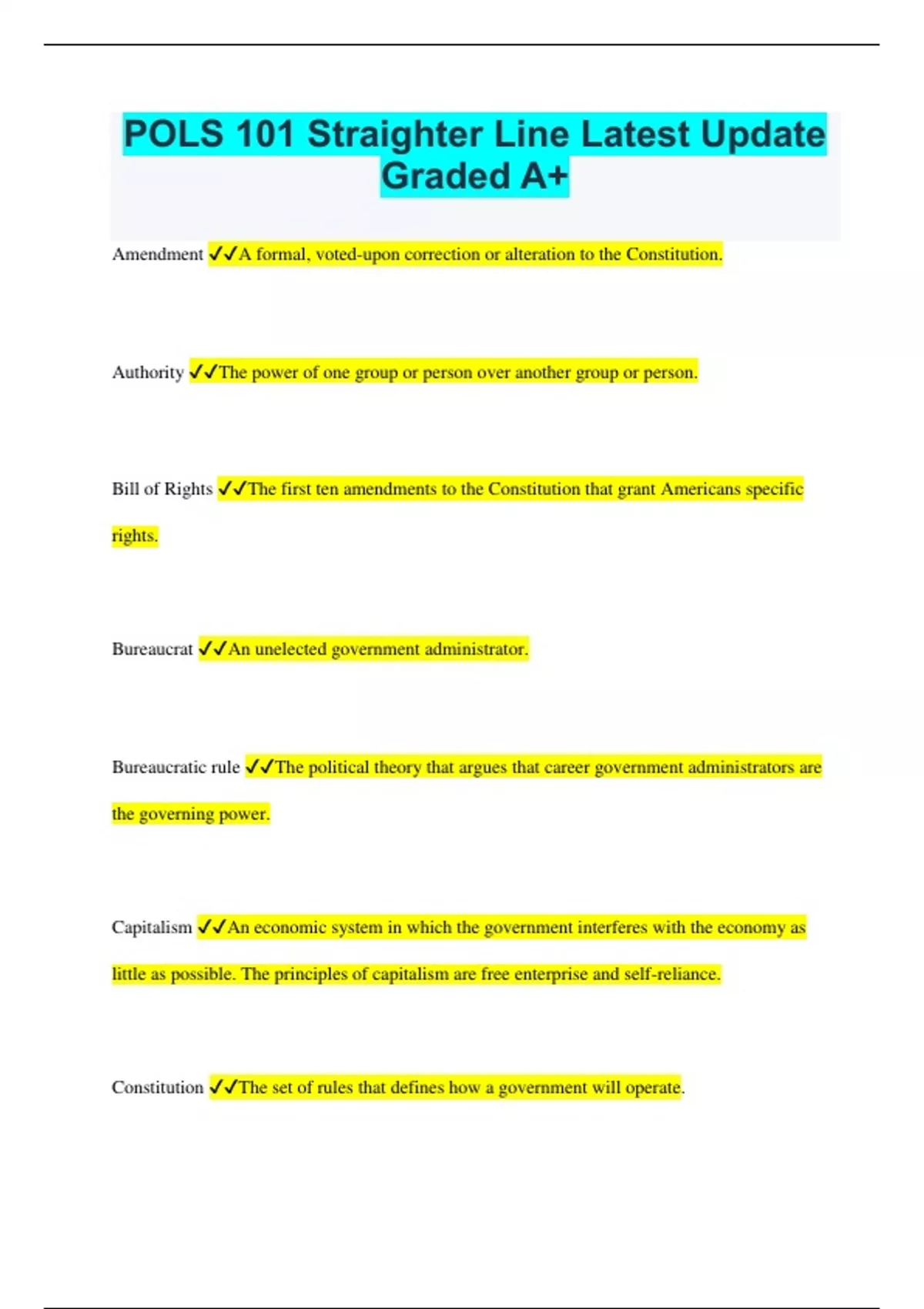 POLS 101 Straighter Line Latest Update Graded A+