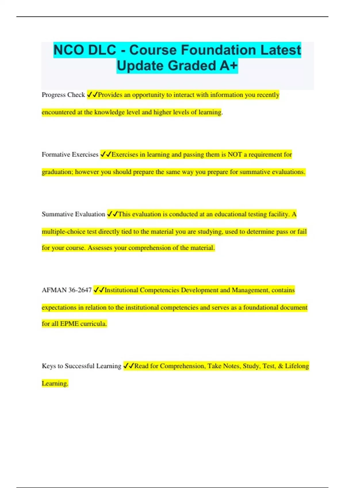 NCO DLC - Course Foundation Latest Update Graded A+