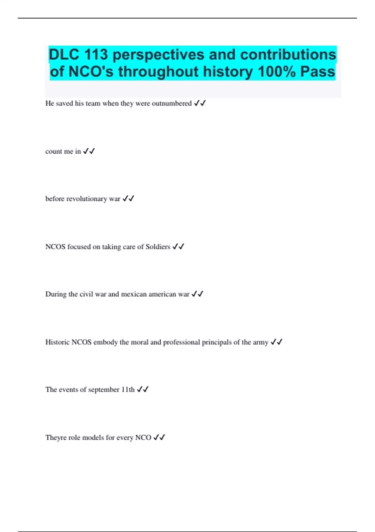DLC 113 perspectives and contributions of NCO's throughout history 100% Pass