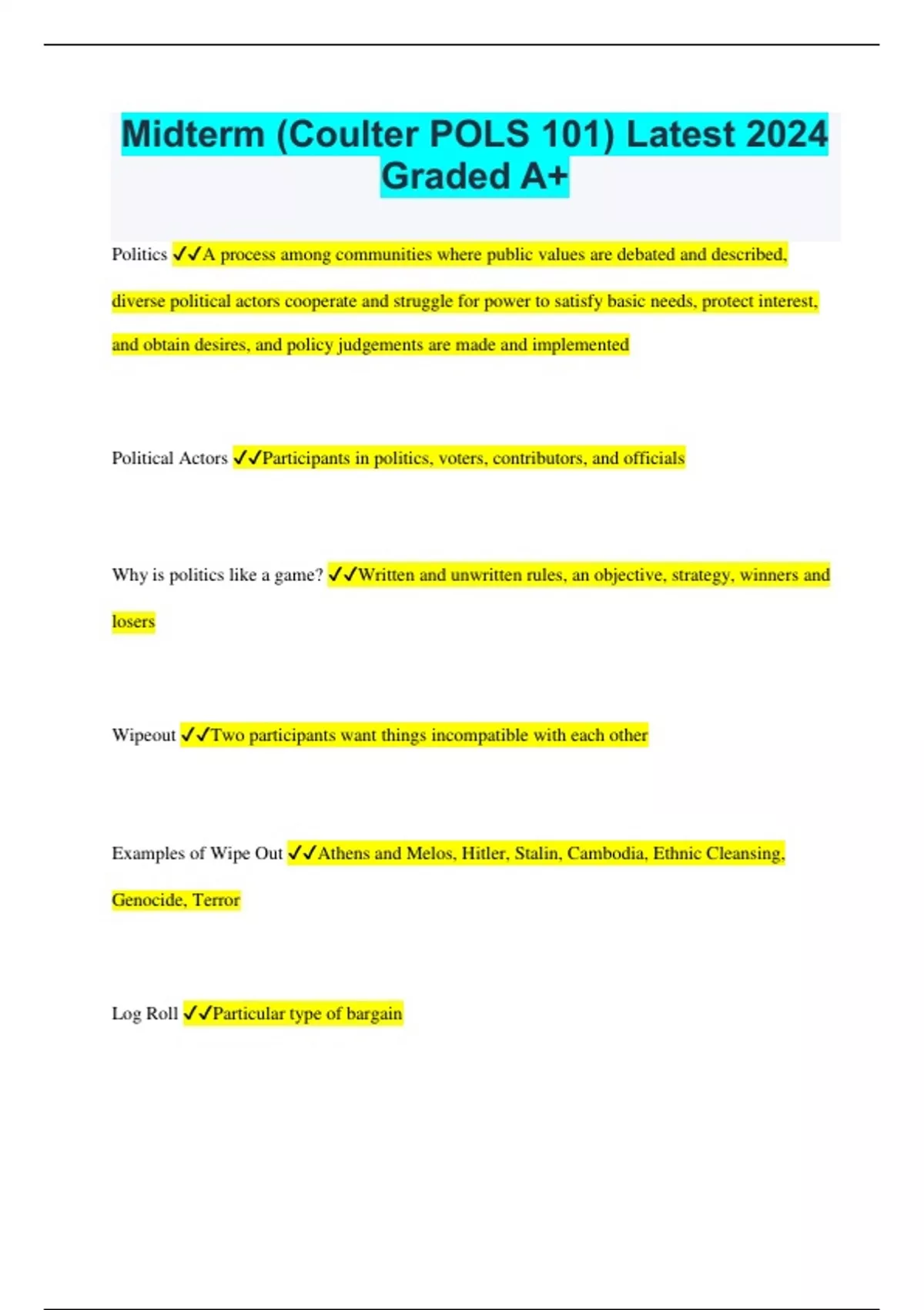 Midterm (Coulter POLS 101) Latest 2024 Graded A+