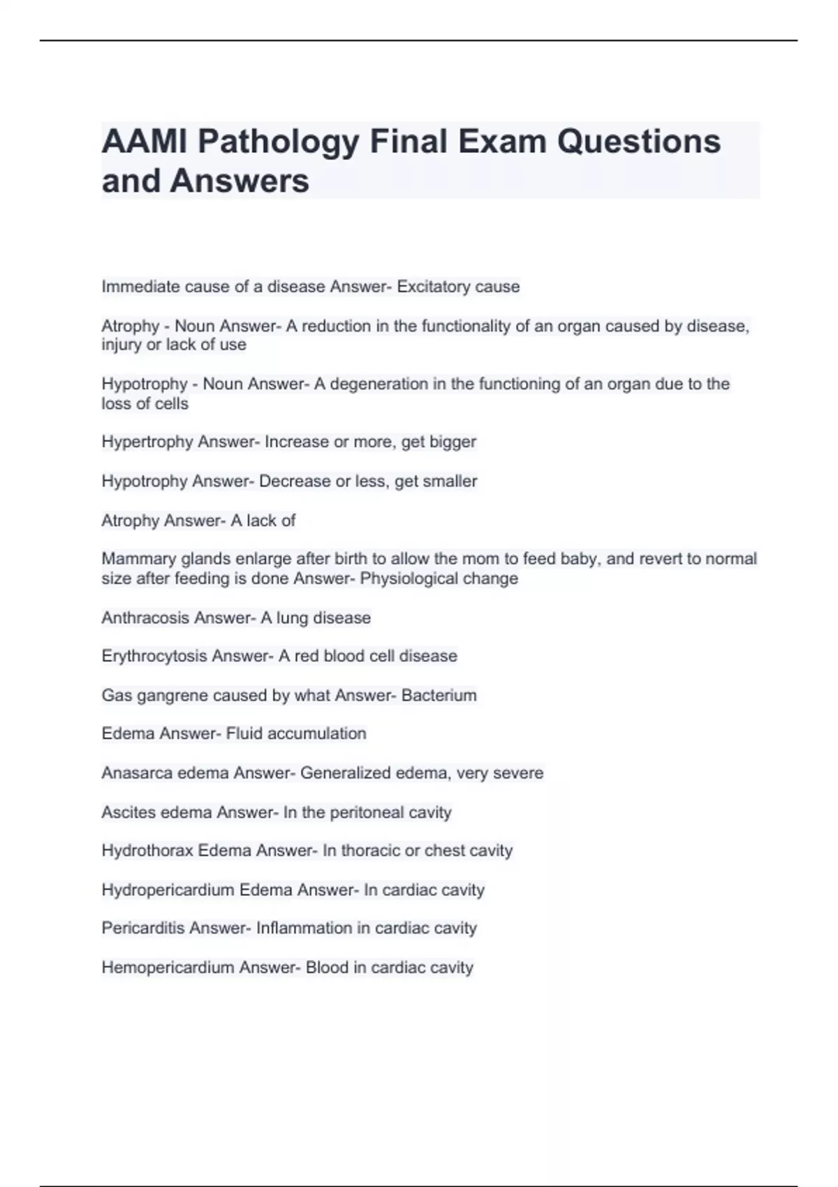 AAMI Pathology Final Exam Questions and Answers