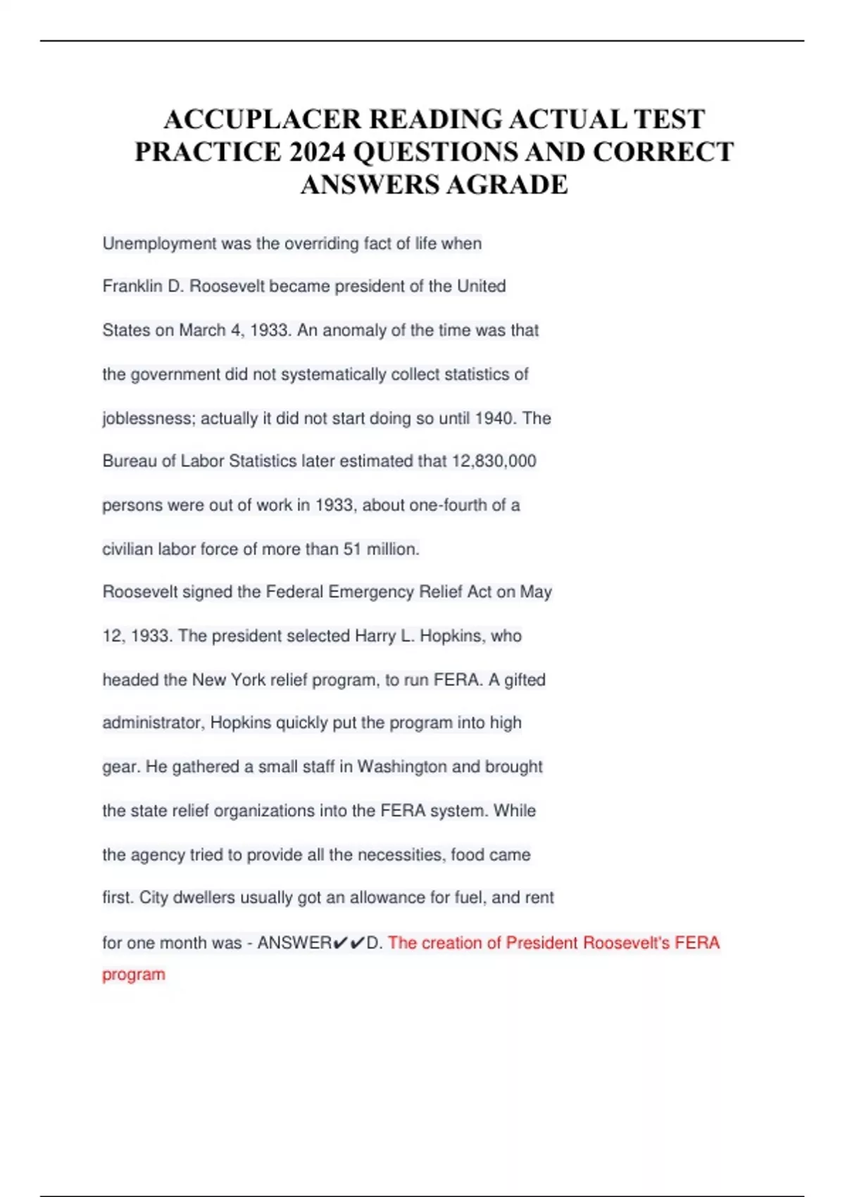 ACCUPLACER READING ACTUAL TEST PRACTICE 2024 QUESTIONS AND CORRECT ANSWERS AGRADE