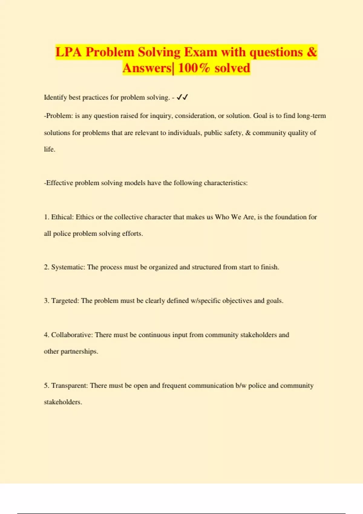 LPA Problem Solving Exam with questions & Answers| 100% solved
