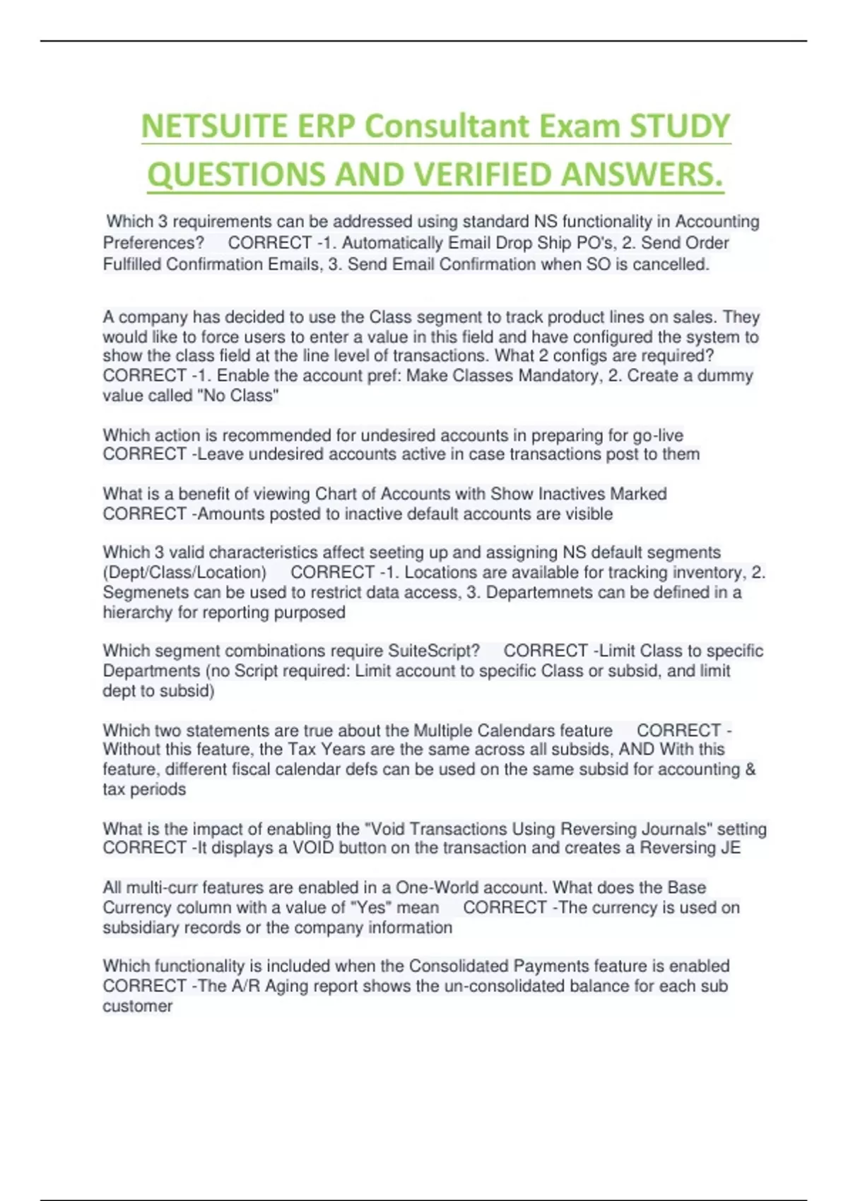 NETSUITE ERP Consultant Exam STUDY QUESTIONS AND VERIFIED ANSWERS.