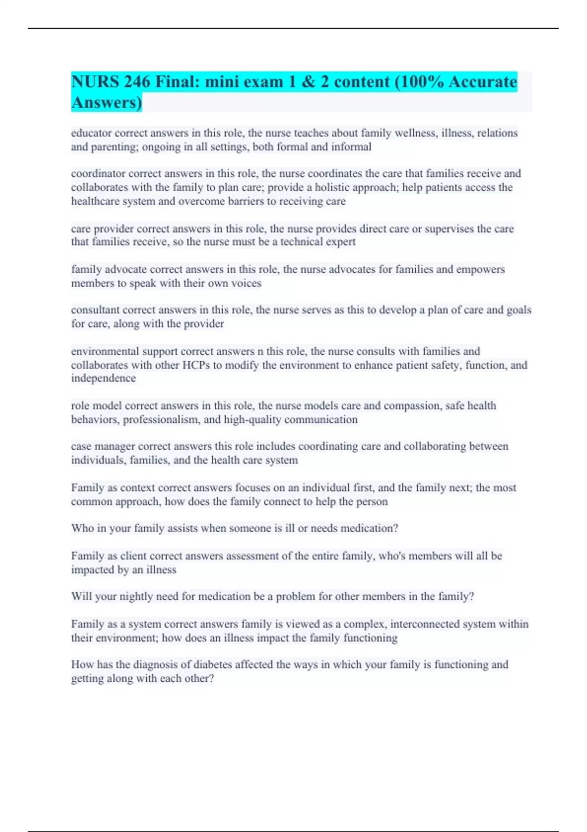 NURS 246 Final: mini exam 1 & 2 content (100% Accurate Answers)