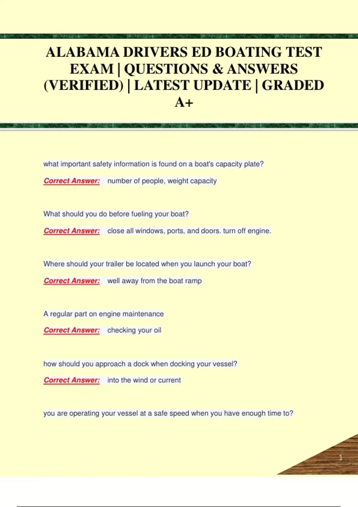ALABAMA DRIVERS ED BOATING TEST EXAM | QUESTIONS & ANSWERS (VERIFIED) | LATEST UPDATE | GRADED A+ALABAMA DRIVERS ED BOATING TEST EXAM | QUESTIONS & ANSWERS (VERIFIED) | LATEST UPDATE | GRADED A+