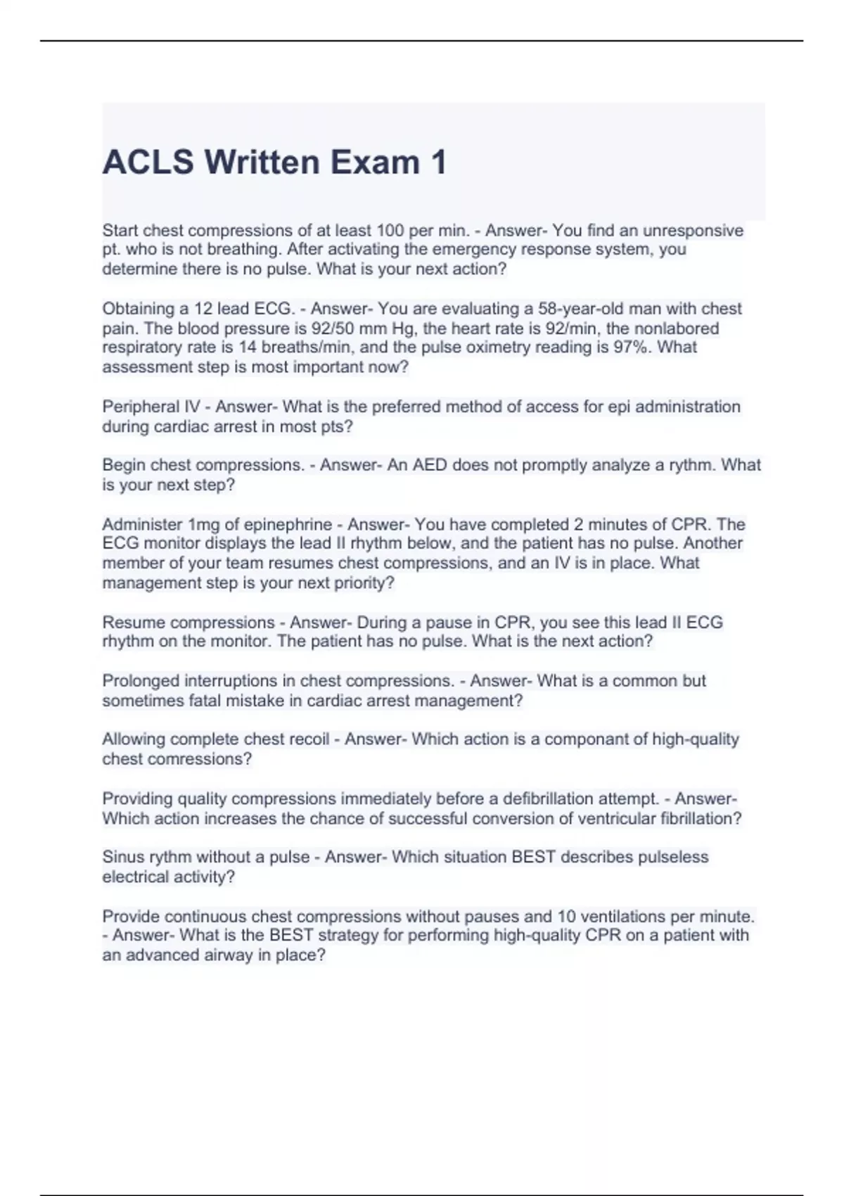 Exam of 12 pages for the course ACOLS at ACOLS (ACLS Written Exam 1)