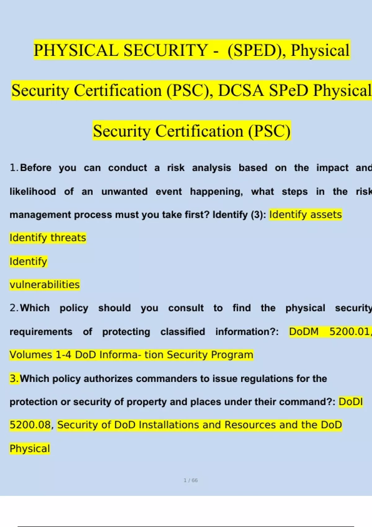PHYSICAL SECURITY-- (SPED), Physical Security Certification (PSC), DCSA SPeD: Physical Security Certification (PSC) Exam Questions & Answers