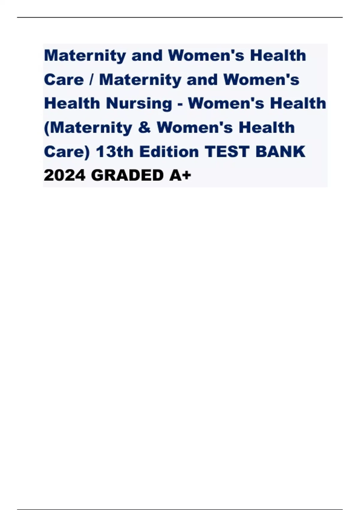 Maternity and Women's Health Care / Maternity and Women's Health Nursing - Women's Health (Maternity & Women's Health Care) 13th Edition TEST BANK 2024 GRADED A+