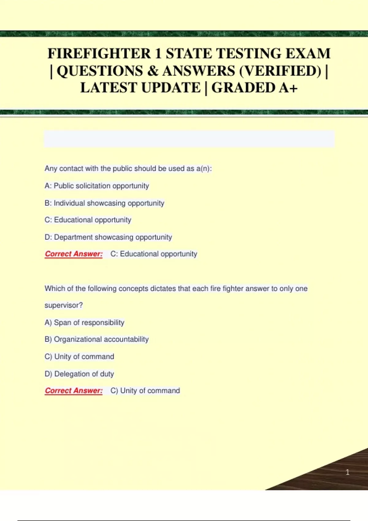 FIREFIGHTER 1 STATE TESTING EXAM | QUESTIONS & ANSWERS (VERIFIED) | LATEST UPDATE | GRADED A+FIREFIGHTER 1 STATE TESTING EXAM | QUESTIONS & ANSWERS (VERIFIED) | LATEST UPDATE | GRADED A+