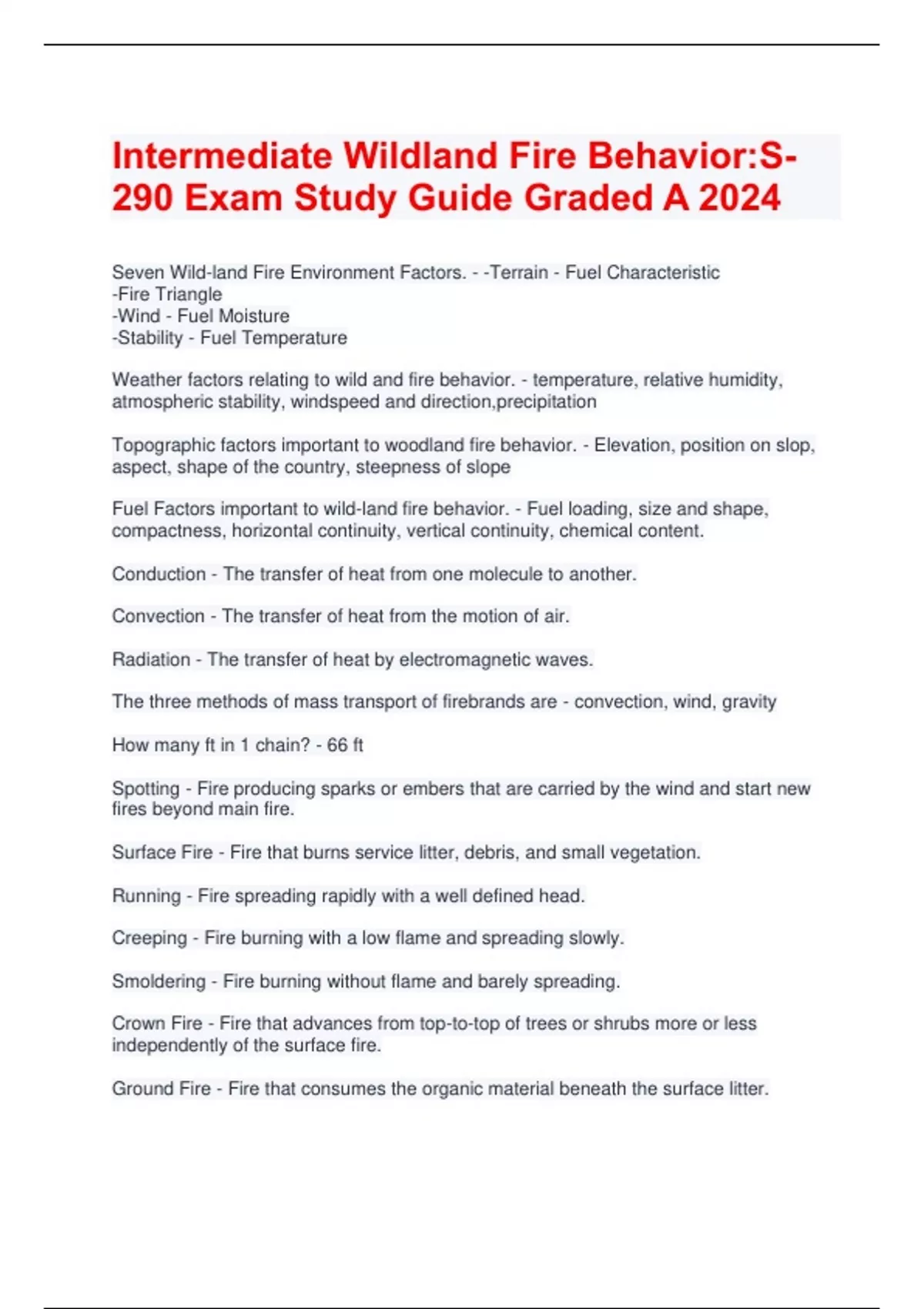 Intermediate Wildland Fire Behavior:S-290 Exam Study Guide Graded A 2024