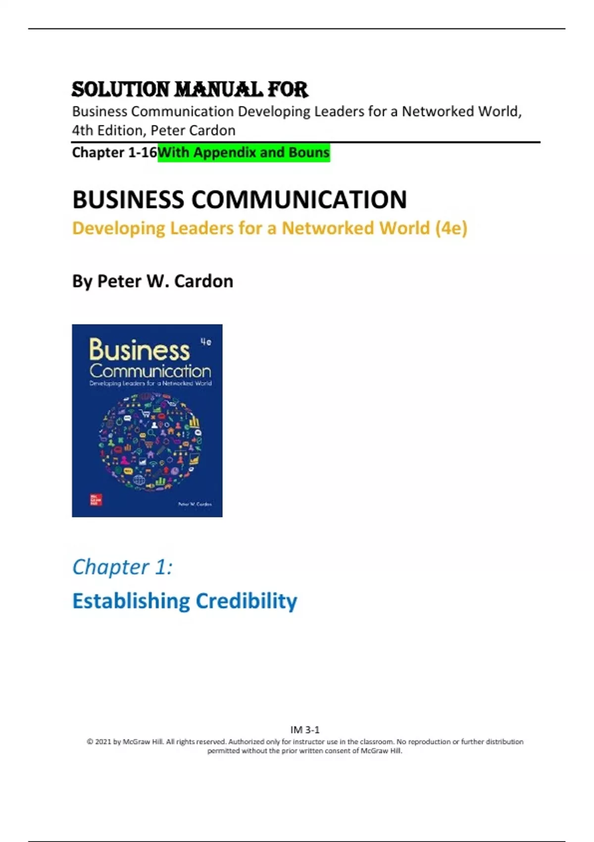 Solution Manul For Business Communication Developing Leaders for a Networked World, 4th Edition, Peter Cardon