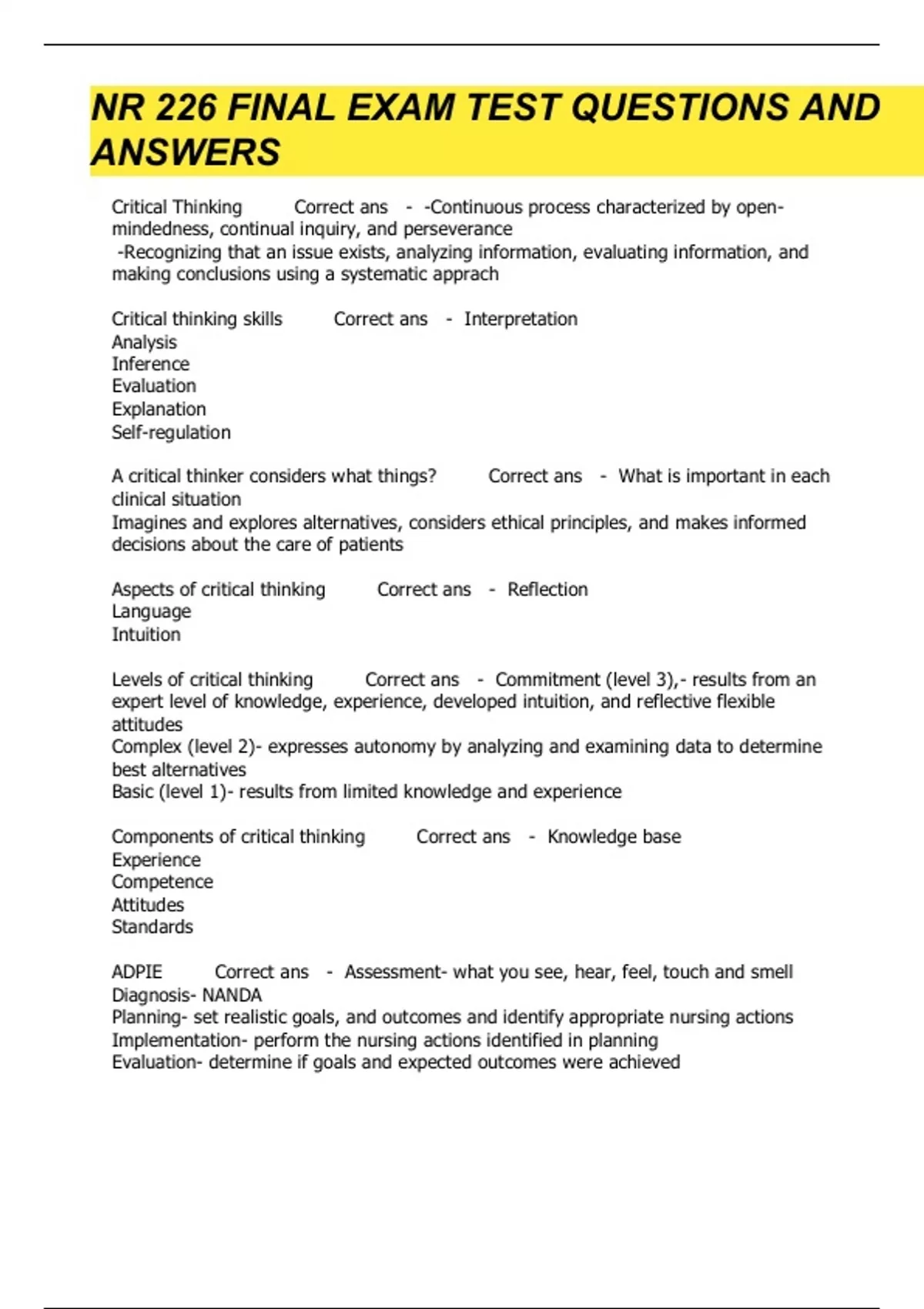 nr 226 final exam test questions and answers