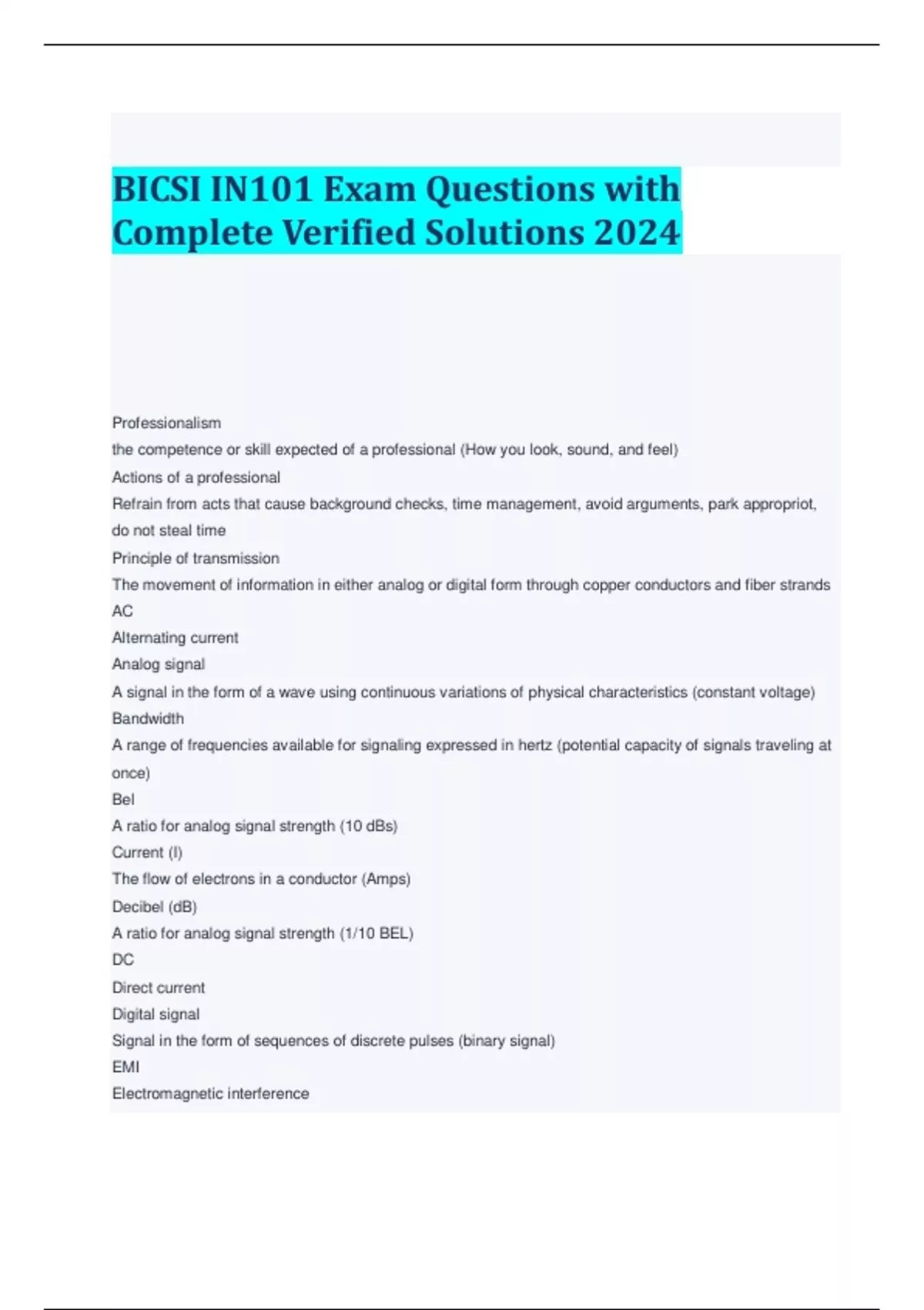 BICSI IN101 Exam Questions with Complete Verified Solutions 2024