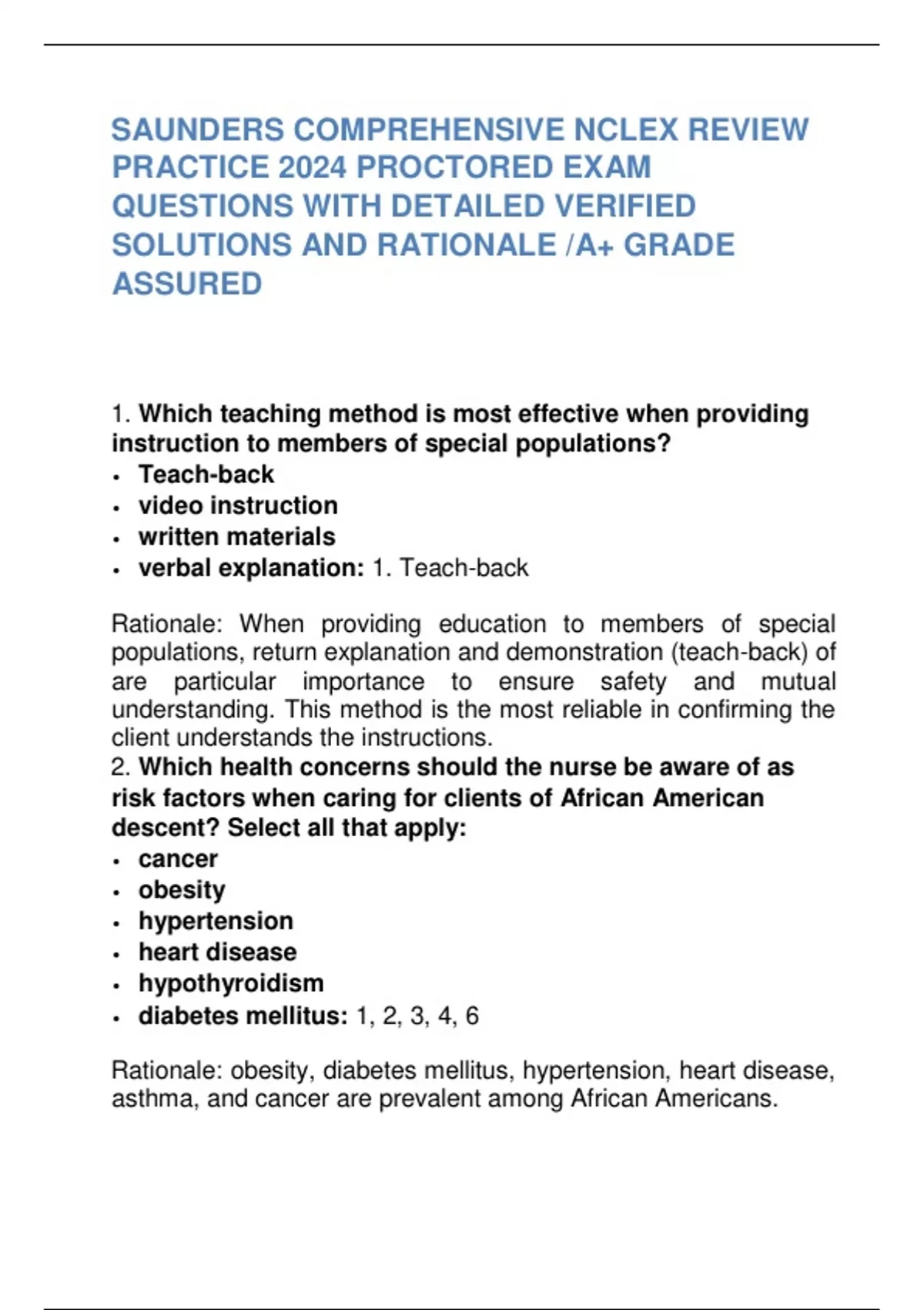 SOLUTIONS AND RATIONALE /A+ GRADE