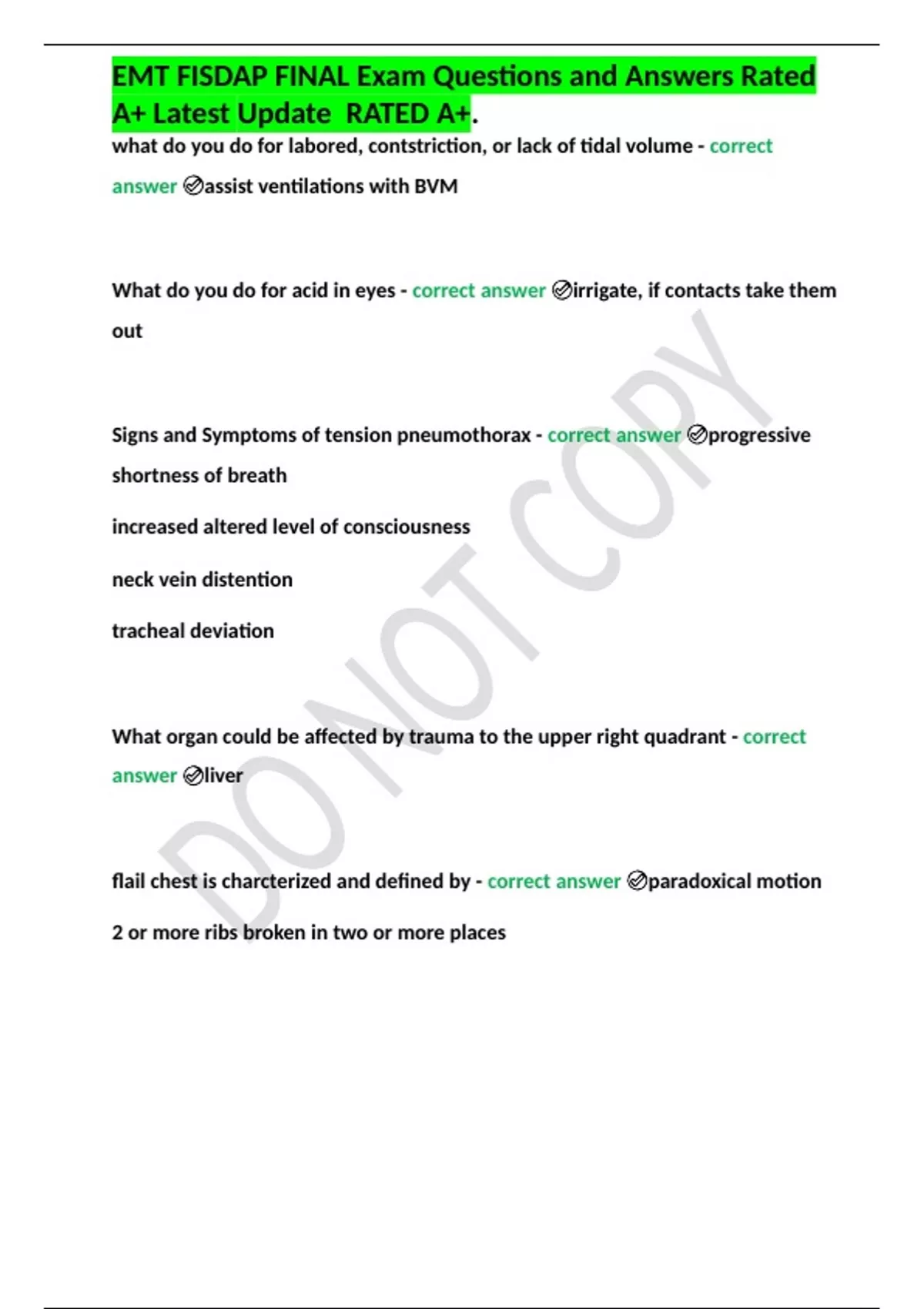 EMT FISDAP FINAL Exam Questions and Answers Rated A+ Latest Update RATED A+.