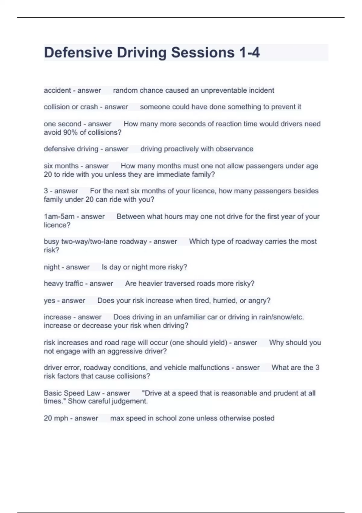 Defensive Driving Sessions 1-4 Questions and Answers Fully solved
