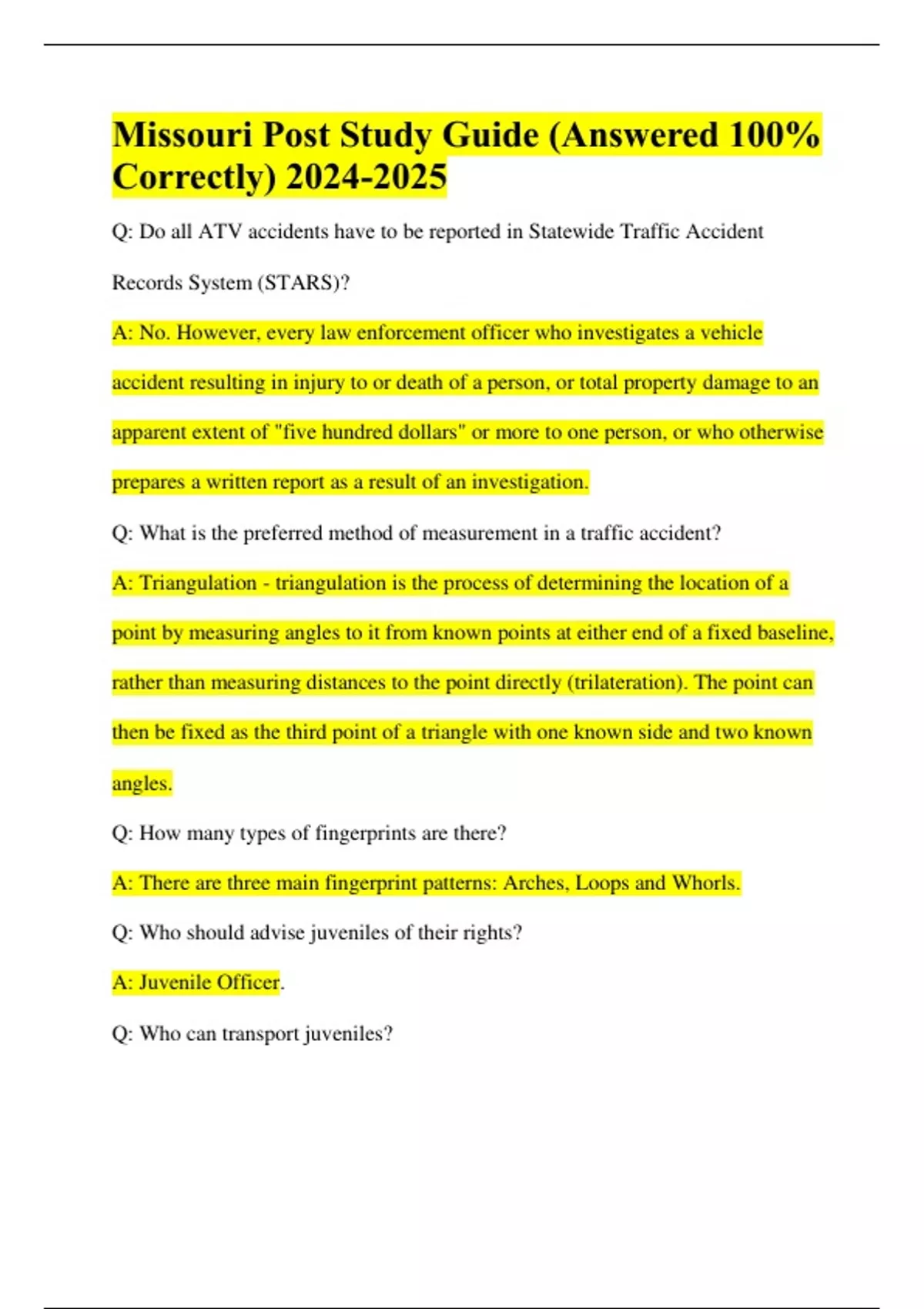 Missouri Post Study Guide (Answered 100% Correctly)