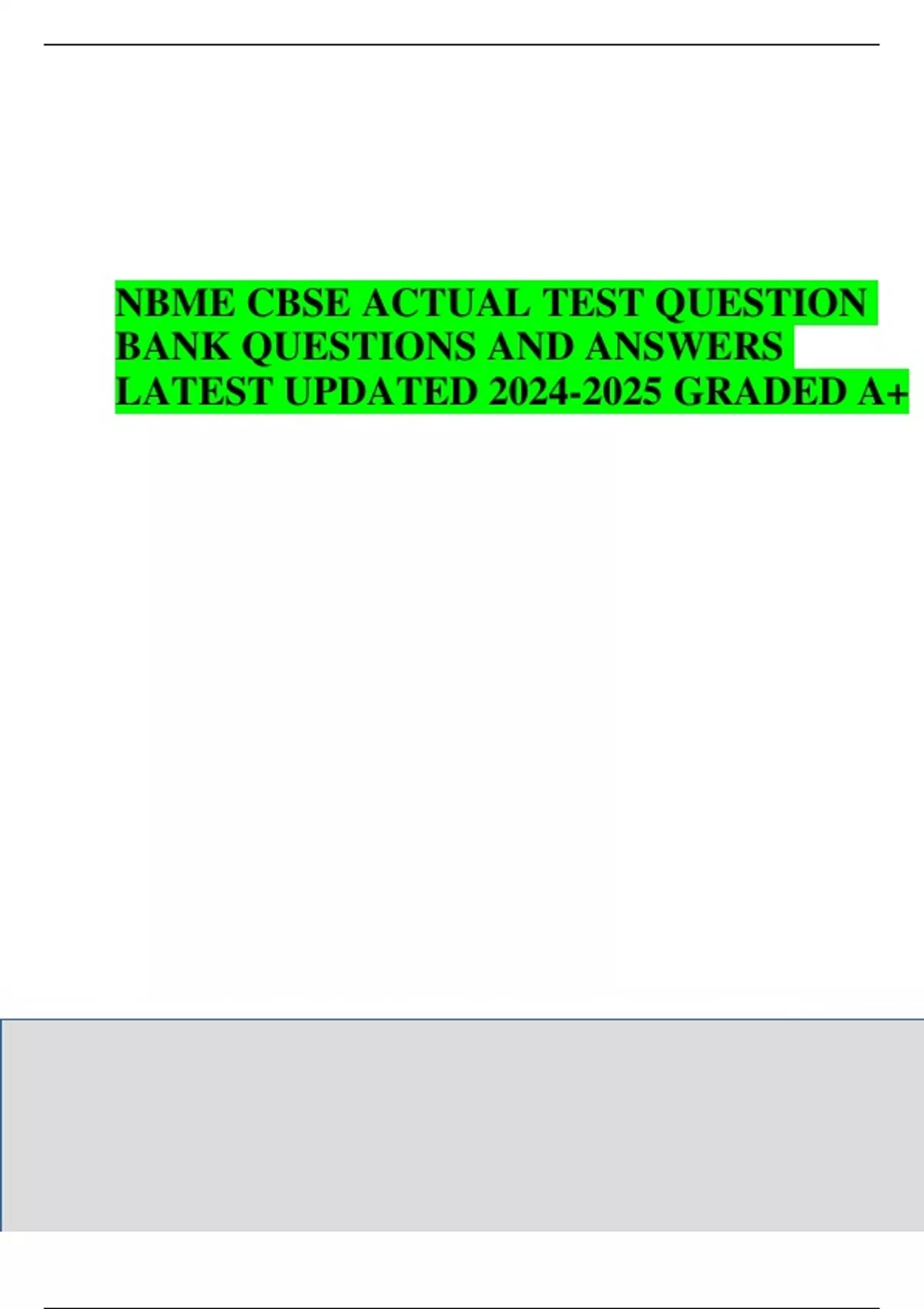 NBME CBSE ACTUAL TEST QUESTION BANK QUESTIONS AND ANSWERS LATEST UPDATED GRADED A+
