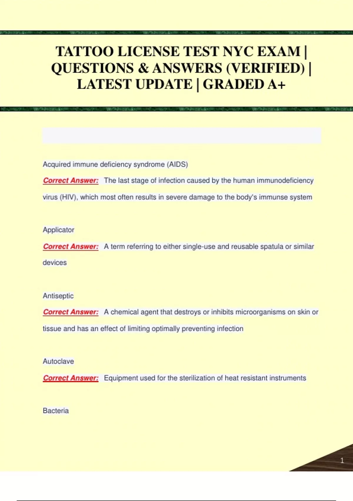TATTOO LICENSE TEST NYC EXAM | QUESTIONS & ANSWERS (VERIFIED) | LATEST UPDATE | GRADED A+