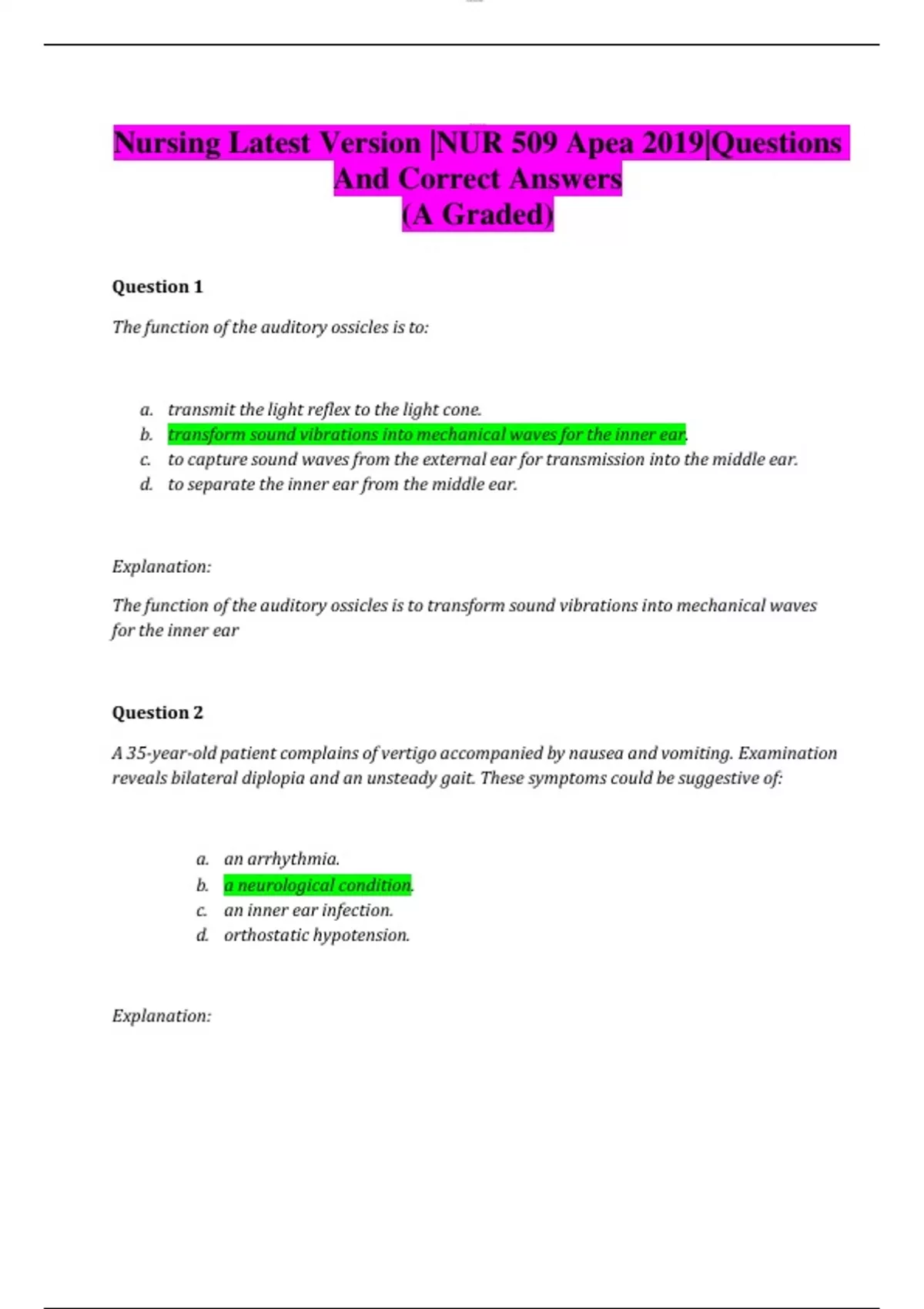 Nursing Latest Version |NUR 509 Apea 2019|Questions And Correct Answers (A Graded)