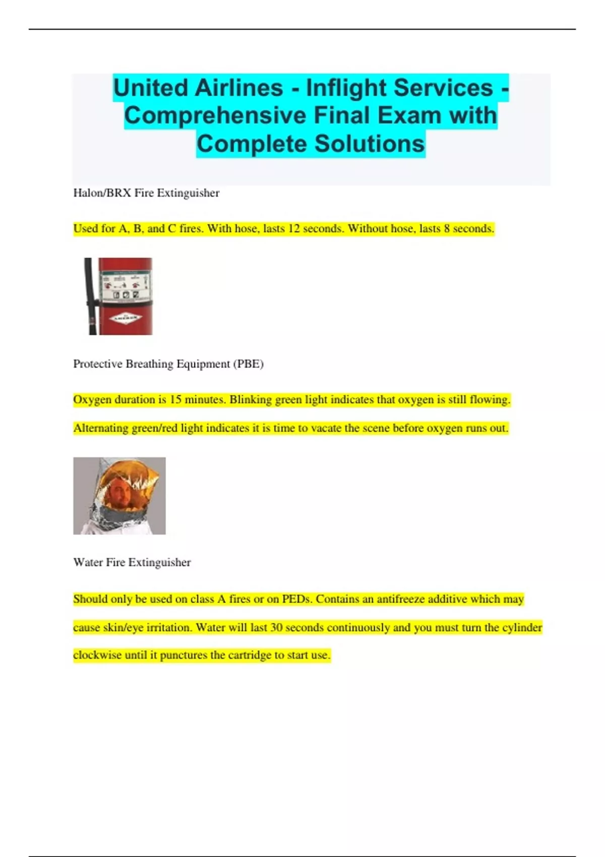 United Airlines - Inflight Services - Comprehensive Final Exam with Complete Solutions