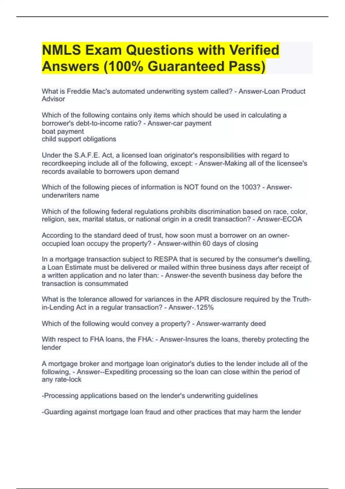 NMLS Exam Questions with Verified Answers (100% Guaranteed Pass)