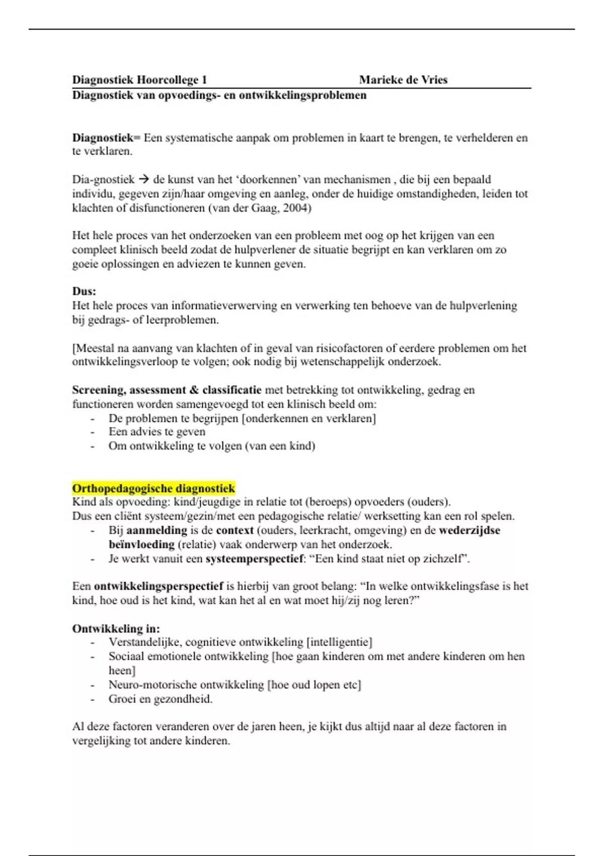 Samenvatting Alle hoorcolleges samengevat Diagnostiek