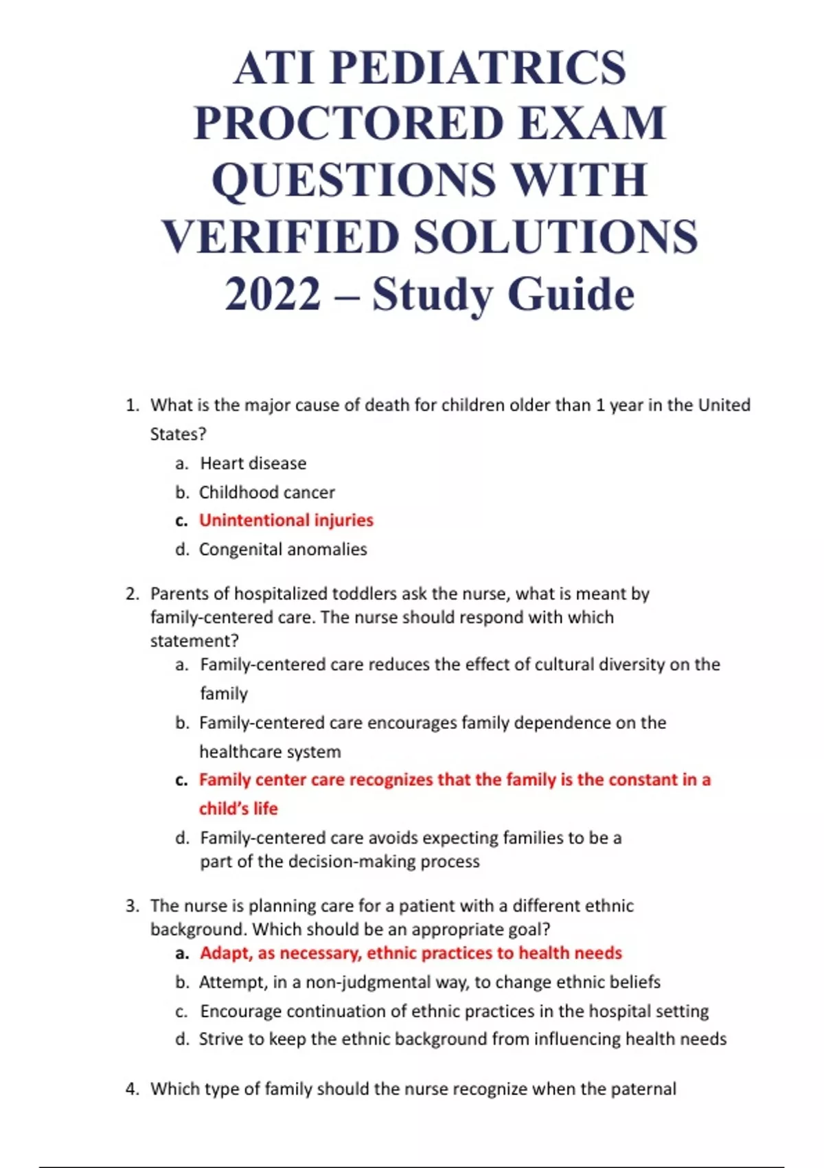 1.Whatisthemajorcauseofdeathforchildrenolderthan1yearintheUnitedStates?a.Heartdiseaseb.Childhoodcancerc .U n i n t e n t i o n a li n j u r i e sd.Congenitalanomalies