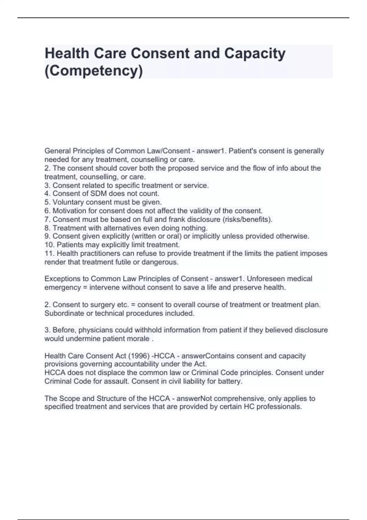 Health Care Consent and Capacity (Competency) Questions with correct Answers 2024
