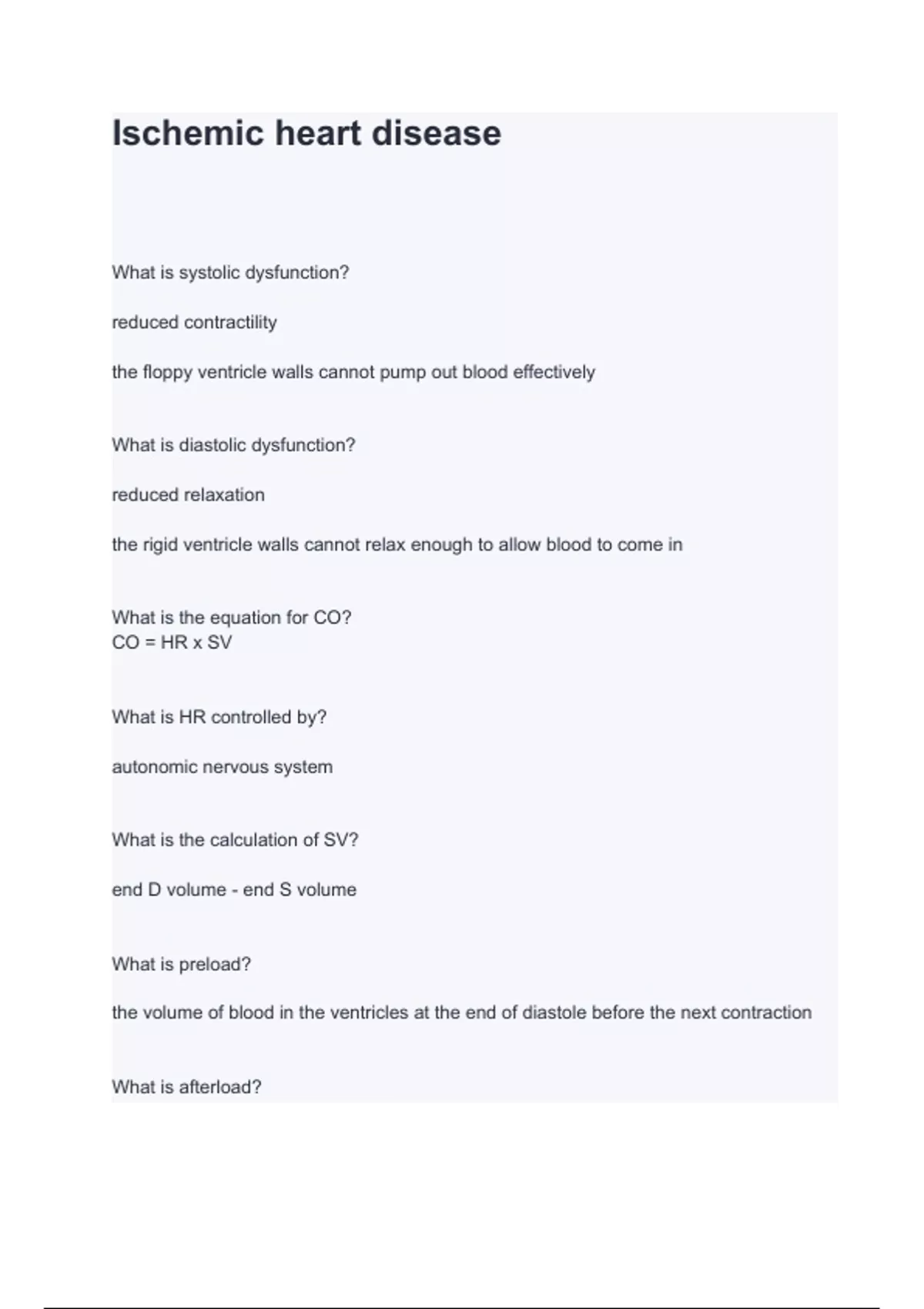 Ischemic heart disease questions and answers