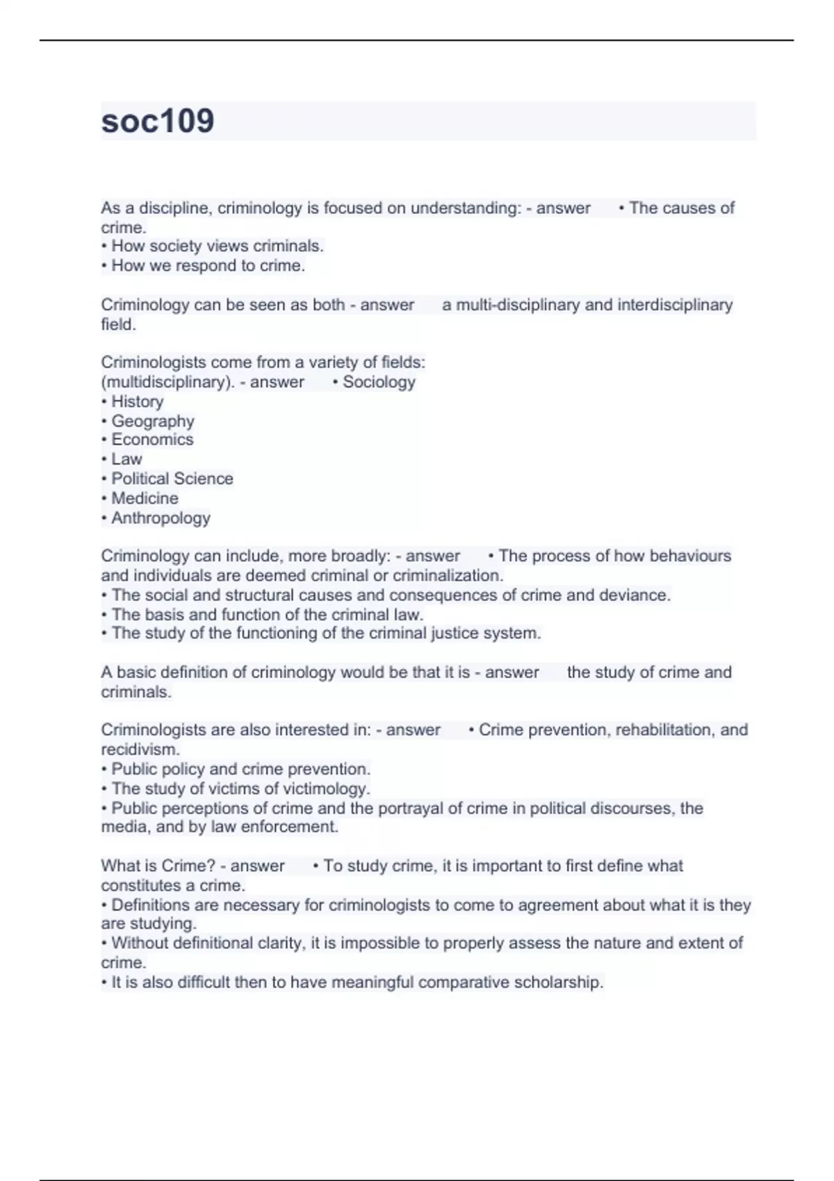 soc109 questions with correct answers