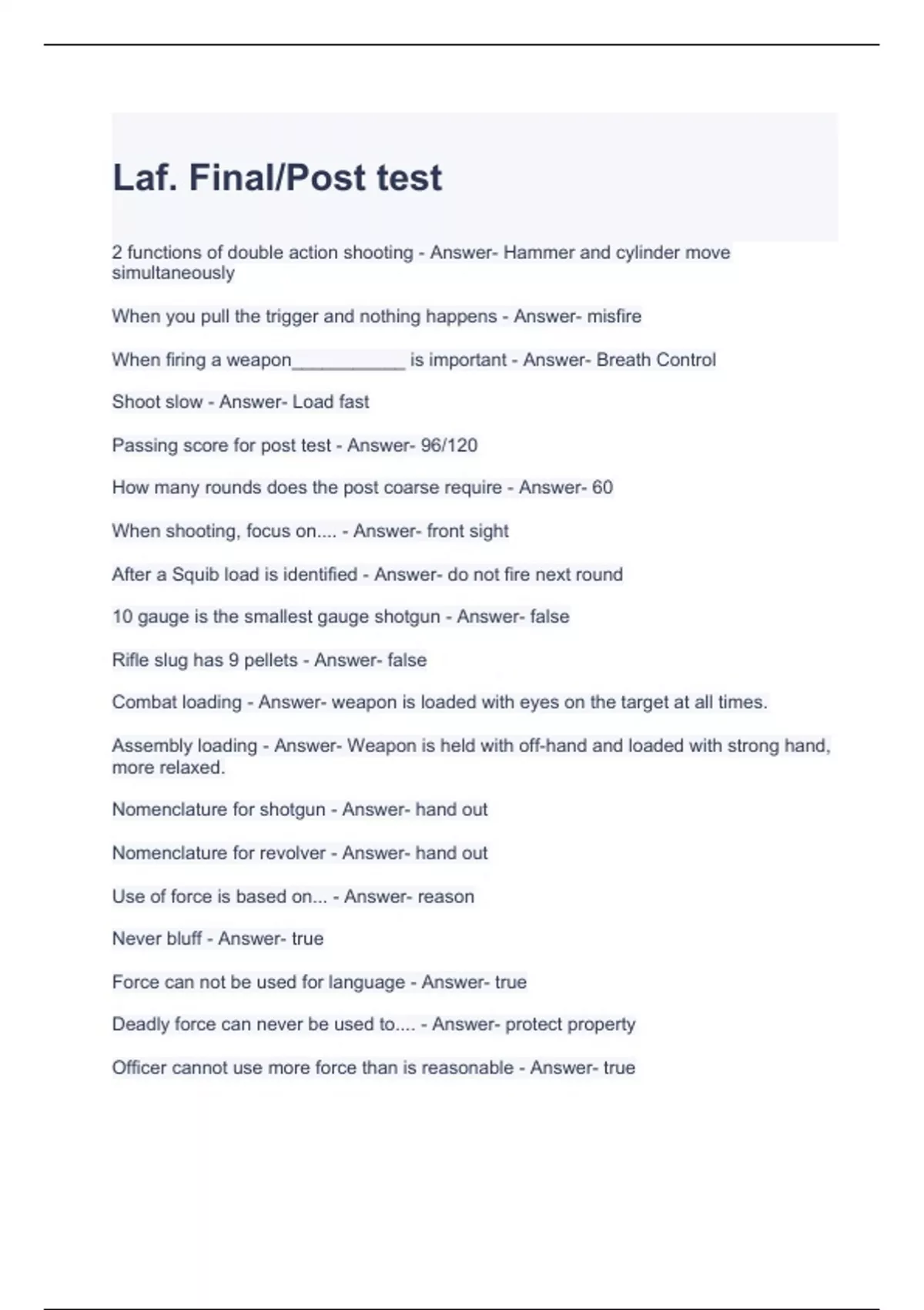 Laf. Final-Post test questions and answers