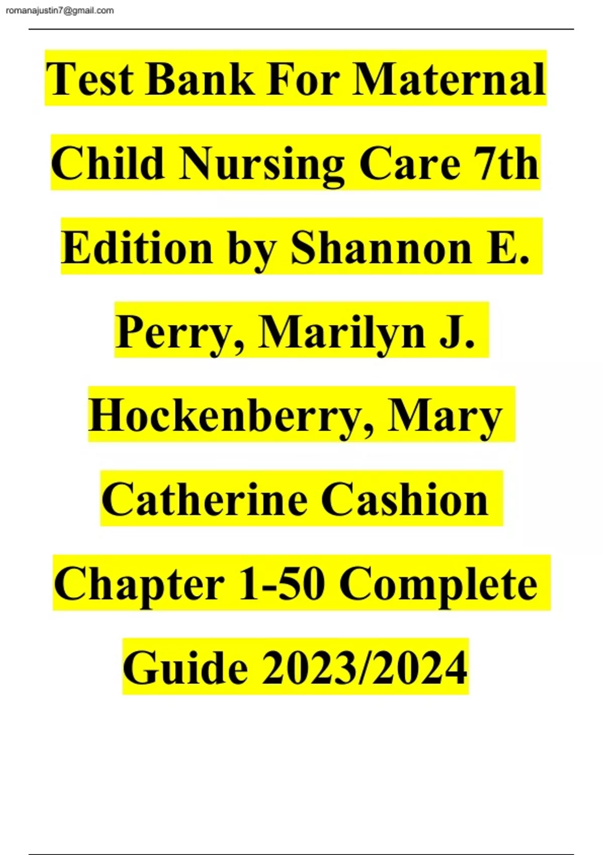 Test Bank For Maternal Child Nursing Care 7th Edition Chapter 1-50 Complete