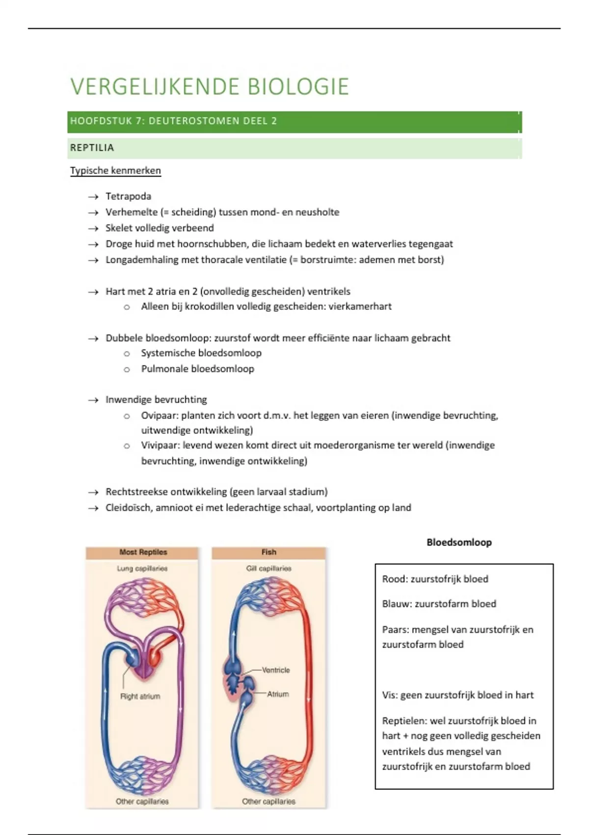 → Dubbele bloedsomloop: zuurstof wordt meer efficiënte naar lichaam gebracht